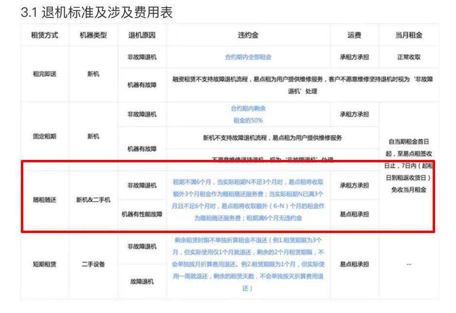 大家好,我是金爷。这是金爷拆解商业“淘金50”系列的第三篇。今天拆解的,是一家向企业提供电脑租赁的公司——易点租。 为啥拆解他呢? 金爷注意到,这公司打出了“租电脑免押金”、“随租随还”、“4小时上门修复”等标语。 金爷就比较好奇——因为电脑租赁这个领域,其实是个老行业,十几年前就有人开始做了。 在前作《隐匿的互金帝国,拆解“10元店”外衣下的名创优品如何“一鱼多吃”》中,金爷提到了俞军的产品价值公式,利用这个公式,看看租赁的新旧体验如何。 过去的做法是这样的: 付款方式上:押一付三;或者分期付款,进行硬件销售,最终转移所有权。 客户体验上:设备出问题,预约维修,时间几天到一周不等。 而现在的新体验是: 付款方式上:免押金,随租随还。 客户体验上:4小时维修上门。 看起来,新体验甩了旧体验几条街! 不过等等——按道理,凡是持续存在的东西,一定是站在牢固的原则之上。电脑租赁的旧模式,延续了十几年,盈利模型是被验证的。 易点租则打破行业规则,率先提出免押金、4小时就能上门,这种种区别于过去的做法,意味着打破了原有的盈利结构,看起来收入变少、成本增加,那新的盈利模型能否跑通? 以及短短5年,易点租就从服务几十家中小企业开始,超越传统玩家成为目前PC长租领域占有率高达77%的龙头企业,背后的关键因素是什么? 接下来,就带着这些问题,一层层拆解易点租的商业逻辑。 传统电脑租赁生意的特点: 能够盈利 做不大 竞争者多 根据DBI的数据,我国商用电脑租赁市场渗透率目前仅4.9%,而欧美市场渗透率约60%。差距非常大。 按说,企业运营过程中,大规模招聘、快速裁撤、区域总部转移,引起的办公资产采购,对企业会造成非常大的负担。 而租赁模式能减少公司一次性支出,让公司更加轻松,更加有弹性,持有更多现金灵活地应对未来变化。 租赁好处似乎挺明显。 问题摆出来,对于那些已经知道了租赁模式的企业,如何预测他们会不会以租代买?为什么他们中一些人成功地转化成了租赁客户,而另一些人没有? 对于很多初创公司,甚至大型科技公司来说,什么时候走到S曲线上由盛及衰的转折点,或者是由平缓增长到指数增长的拐点,是个战略性难题。 不过如果能及时发现蛛丝马迹,并及早解决,就能清除掉战略性增长的最大障碍。 这就是找到、并清除称之为隐形天花板的问题。 所谓隐形天花板,就是按照公司或者行业现有的路径、模式,势必会遇到的增长瓶颈。这个概念,对各位创业者,制定战略及商业模式,非常重要。 金爷看来,易点租能快速增长最重要的一点,就是创始人很早就发现了那个隐形天花板;并且一开始就着力解决这个问题,逐步迭代、完善,这是这个案子的胜负手。 这得益于创始团队背景以及早期大量调研: 创始人纪鹏程,创办易点租之前做了十年二手笔记本生意,深谙各类客户的需求,并提炼出一个观念:客户要的不是硬件本身,而是硬件的使用——这本质上是一种服务。 同时,2015年公司刚开张的时候,做了大量调研:一方面找了能联系上的创业公司咨询电脑租赁需求细节;一方面,直接在科技公司聚集的五道口,进行街头调研。 经验和调研,在同一个点上达成了惊人的一致,这个单一因素甚至在整个泛租赁经济中都至关重要。 ——押金。客户厌恶支付押金。 这似乎这是明摆着的,并不新鲜,谁愿意多付出钱而不产生价值呢?但真正深刻理解了这一点,对于易点租实现高速增长居功至伟。 客户已经不是简单的讨厌付押金而已,这种讨厌实际上到了一种非理性的程度。 之所以知道这一点,是因为客户明明都知道押金是要退还的,今天虽然流出,明天却会流回,除非违约;而押金的目的是为了让客户理性守约,避免违约。 但人们对这种理性分析并不买账。根据前景理论,人们对亏损的反应非常强烈,以至于希望避免任何可能的亏损。 付出的押金,有可能变成真正的损失,而没有可能产生任何价值。 在发现了这个隐形障碍之后,易点租便把如何免押金,就成了要攻克的核心障碍,并成功做到。 要知道,大家对一个障碍的厌恶有多严重,那当障碍被清除之后,需求的迸发就有多强烈。 有金友肯定要说,免押金后,一旦客户违约,易点租是不是就少了一块儿违约收入呢? 错。 易点租的免押金的策略,同时实现了两点目的: 快速占领市场,把规模做上去 保证违约收入不变 怎么做到的? 前面说了,传统租赁,押一付三,如果违约,押金就不退。 易点租模式中,客户下订单时,并不收押金;但一旦违约,就要交纳所谓的“服务费”。 易点租设计了详细的售后违约费用体系: 易点租提供了5种租赁模式,其中以“随租随还”为主要。以此为例。 对不同租期的客户,违约收取的“服务费”分为下面三种情况: A类客户,租期满6个月,之后可以随时退还,无违约费用。 B类客户,租期3-6个月,服务费为“6-N”个月租金(N为实际租期); C类客户,租期不足3个月,服务费为“三个月租金”。 如果租期很短,违约费用最高达3个月租金;而如果租期很长,那么可以随租随还。核心精神就是:鼓励长租,惩罚短租。 而这个惩罚力度,大大超过传统租赁模式所收取的一个月租金。因此,相对于旧模式损失的一部分违约收入,又在违约的短租客户身上赚取回来。 这叫交叉补贴:用一群客户补贴另一群客户。在商业世界里,交叉补贴用得太多了。 腾讯开发的微信,给你免