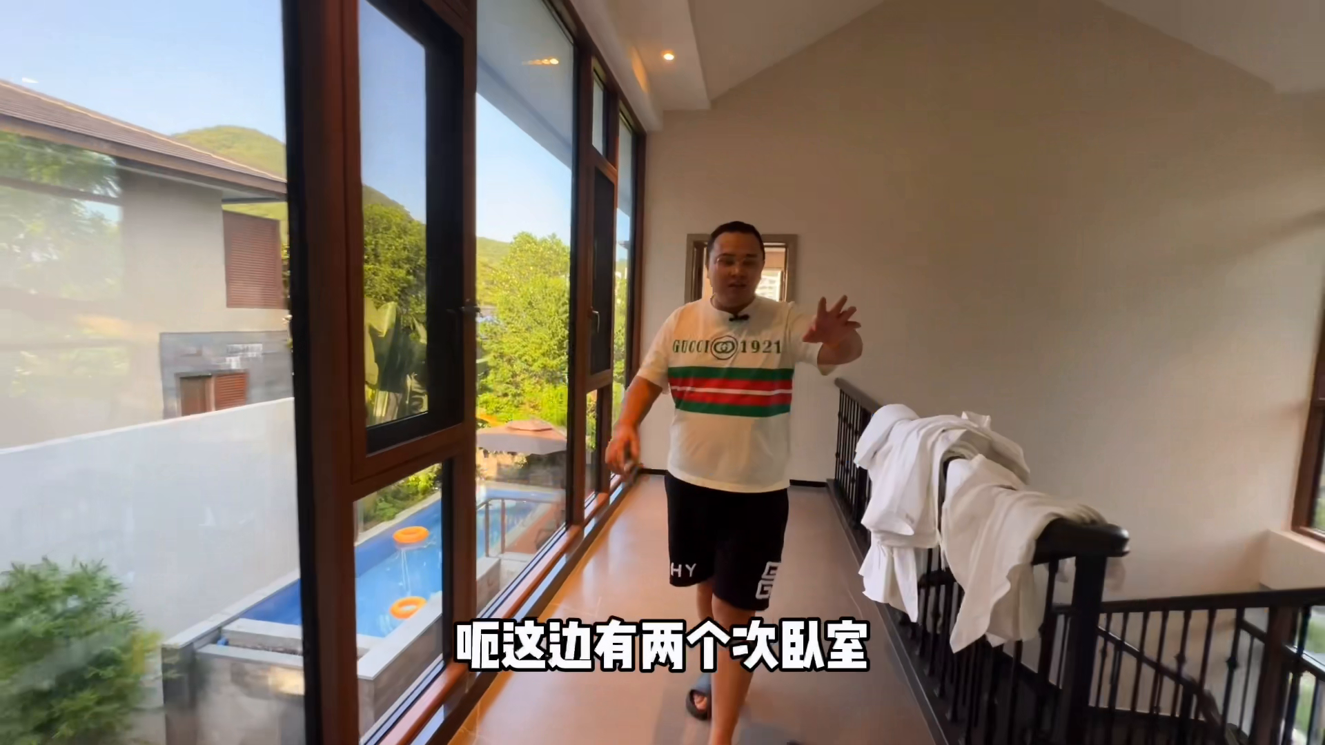亚龙湾全新六居泳池独栋别墅,日租月租定春节。 三亚归来不看海,除去亚龙不是湾。哈喽大家好,我是三胖。今天三胖给大家看一套三胖刚刚整备完成的位于亚龙湾c位的一套六居,里外全部装修了,从毛坯打成的精装修上一套别墅,春节可以短租的,一起看房。 此套房是个边户型,三胖加盖了电梯,也是给老板精心准备的原木物语的家具。这些家具好处就是对宝宝没有任何的伤害,都是零甲醛的实木的家具。一层的区域整体是做了客厅和餐厅以及厨房的处理。电梯这边是我加盖的。 来到餐厅区域,这边给老板配备了一个标准八人位的餐厅,可以看到保洁阿姨也正在准备,正在做铺、炒、做卫生、做保洁,所有的厨房里面的锅碗瓢盆也都给老板配备齐全了。 坐电梯来到二楼,二楼整体是做了三间卧室的处理,这边三胖也都给加盖了,是一个落地窗,原来是没有窗户的。这套别墅也给老板做了隐私玻璃,可以看见保洁阿姨正在准备布草,也都配的全新的,就等老板您来入住了。 同样每间房间里面均都配备了干湿分离的卫生间,全都是打成毛坯装的。这边有两个次卧室,先看这一间,来到这间次卧室里面有一张一米八乘两米的大床,同样每间房间里面均都配备了干湿分离的卫生间。三间卧室,这边还有一间卧室,这间卧室里面也给配备了一张一米八乘两米的大床,干湿分离的卫生间也都成为了它的标配。 来到下沉式的一层,下沉式的一层整体做了三间卧室,左右手边各分布着一个卧室。先看这间次卧,这间次卧里面有一张一米八乘两米的大床,保洁阿姨还没准备完成,这边还没铺布草,同样每间卧室里面均都配备了干湿分离的卫生间。它的对面也有一间大卧室,这间卧室里面也有一张一米八乘两米的大床,所有的布草都给老板配上新的。 刚刚准备完成的这样一套春节也可以短租的。如果你那边天冷了赶紧到三亚来,三胖给你安排这样一套。在我们亚龙湾,亚龙湾是沙子最好的湾区了,这边也整备完成了。这边有一个一米八乘两米的大床,也是有一个卧室的,一共是六间卧室加一个保姆房,可以睡到十二个人到十四个人,出门带老板、带小朋友,这样一套完全可以满足你的日常出行,就在我们的亚龙湾。