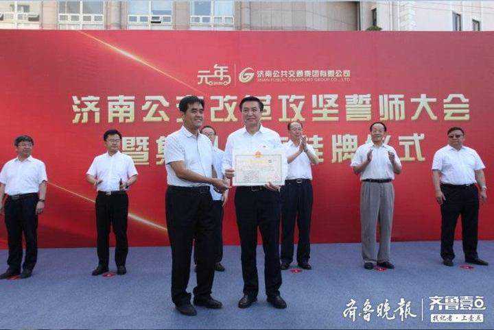 齐鲁晚报·齐鲁壹点记者刘飞跃 6月11日,记者从济南公交获悉,11日上午,济南公共交通集团有限公司改革攻坚誓师大会暨挂牌仪式在公交集团驻地隆重举行。济南市人民政府副市长王京文、市民巡访团团长辛安共同为济南公共交通集团有限公司揭牌。 上午9时,济南公共交通集团有限公司改革攻坚誓师大会暨挂牌仪式隆重举行。在热烈的掌声中,王京文、辛安共同为济南公共交通集团有限公司揭牌;市行政审批服务局副局长侯吉广向济南公共交通集团颁发营业执照。 正式挂牌的济南公共交通集团有限公司为国有独资有限责任公司,主要经营业务范围为济南市辖区公共交通客运、出租客运、包车客运、班车客运等。济南公共交通集团有限公司的成立,标志着企业实现了由全民所有制企业向国有独资有限责任公司的转变,开启了产权清晰、权责明确、政企分开、管理科学的现代企业制度新征程。 济南市交通运输局局长、党组书记贾玉良在讲话时指出,多年来,济南公交始终坚持以人民为中心的发展思想,艰苦奋斗、砥砺奋进,为泉城人民出行和城市发展作出了应有贡献。公交集团的挂牌成立,标志着济南公交事业迈上了更高平台,步入了新阶段。希望公交集团紧紧围绕“激发内生动力和活力,提升管理与服务能力”的改革攻坚目标,加快打造“支撑作用大、治理能力强、公交形象美、企业效益好”的现代公交企业。 据了解,济南公交事业起步于1948年9月,党的十一届三中全会后,进入改革发展新阶段;1981年,分为济南市公共汽车公司、济南市电车公司、济南市客车出租公司,三个公司均为独立核算的全民企业;1992年,为整合公交资源,组建济南市公共交通总公司,进入蓬勃发展的新时期。 为进一步提升管理效能和服务品质,济南公交按照济南市人民政府深化国企改革的有关意见及要求,于2018年8月全面启动公司制改革,逐步建立健全“三会一层”公司制治理结构,并于2020年1月,正式成立济南公共交通集团有限公司。截至目前,企业拥有职工13500余名,营运车辆5800余部,常规公交线路346条,定制公交线路500余条,较好地满足了城市经济社会发展需求。 七十余载风雨兼程,九万里风鹏正举。济南公共交通集团有限公司董事长、党委书记石军表示:“我们将进一步强化责任担当,勇于开拓创新,认真履行职责,坚决不辱使命,按照市属国企改革“11293”工作目标任务,以刀刃向内的勇气和魄力,加快公交改革攻坚步伐,实施公交扩能提级工程,建设人民满意公交。” 仪式由济南公共交通集团有限公司总经理、党委副书记周建国主持。济南市财政局副局长王传秋;济南市国资委副主任张良通;济南市交通运输局党组成员、副局长罗卫东;原济南市市政公用事业局副局长,济南市公共交通总公司经理、党委书记王宗岱;原济南市公共交通总公司经理、党委书记,市委台港澳办主任薛兴海;公交退休领导代表;市民乘客代表;集团班子成员和员工代表等参加活动。