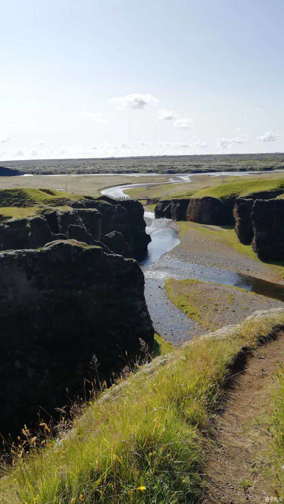 羽毛峡谷,峡谷本身并没有特别出彩,特别是登顶之后,居高临下,目之所及黑色的乌央央的一片,那便是千年前奔流而下的熔岩,而今风沙之下碎化为的火山石。登到羽毛峡谷的顶端,是一片高地风景,十分大气,不要错过。我想跟苏格兰高地风光有得一拼。