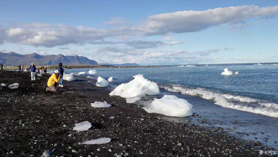 钻石沙滩就在大冰河湖不远处,其实就是冰河湖融化的冰块,被海水不断地推到海滩上,最大的冰块目测有3立方,大人小孩都在这里玩得不亦乐乎,跳到大冰块上各种凹凸造型,蛮特别的,一定要留够至少3小时在这里慢慢玩。