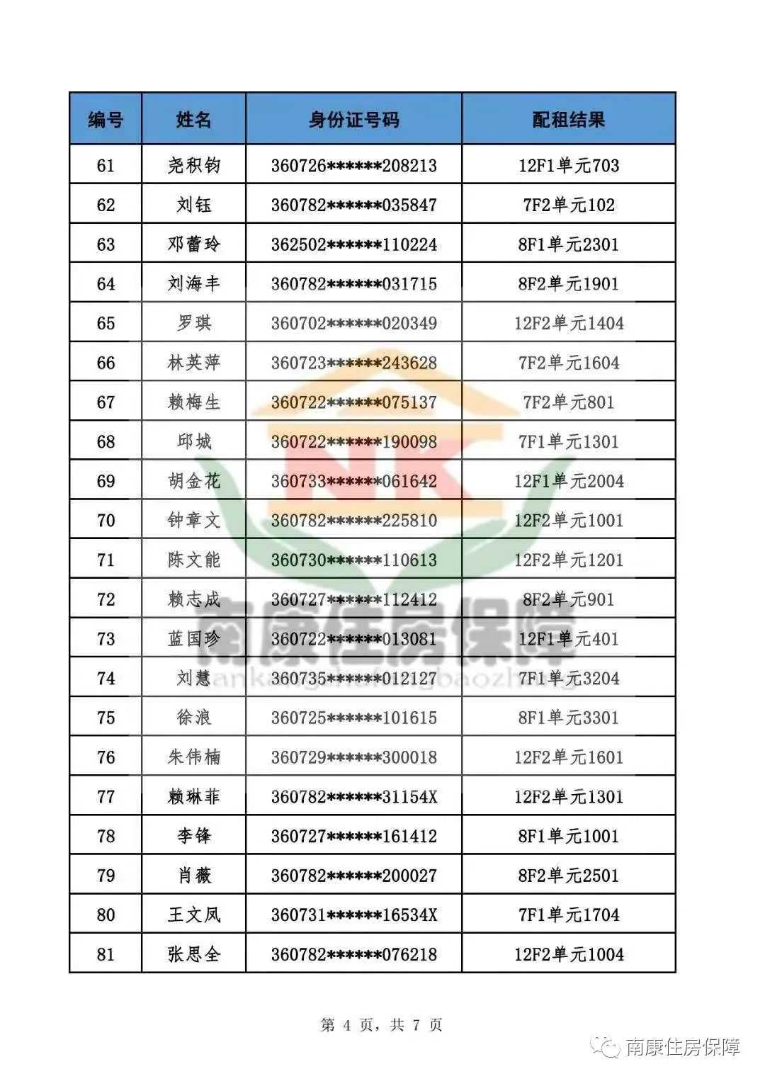 5月12日上午,我区举行2021年第一批公共租赁住房定向用于人才配租摇号仪式,共有58家申请单位(企业)共计131户符合申请条件的家庭参与摇号,113户家庭喜提新居,剩余18户家庭轮候配租。 本次摇号的房源位于迎宾苑公共租赁住房小区共计113套:其中一居室62套,二居室24套,大二居室27套。对符合申请条件的131户申请家庭(其中一居室申请家庭80户,二居室申请家庭24户,大二居室申请家庭27户),现场按照申请住房类型分成三组,依次通过电脑摇号产生113户配租房号和18户配租轮候顺序号,摇号全过程进行现场公证录制,并在区人大代表、政协委员、监察委、公证处等部门的监督下完成。 公证人员现场监督摇号 摇号结束后,配租及轮候结果公示到期(5天)无异议的,区住建局住房保障部门将核发《南康区2021年第一批公共租赁住房定向用于人才配租通知单》至用人单位,1个月内,用人单位应与公共租赁住房产权单位区住建局住房保障部门(或其委托的管理单位)签订《赣州市南康区人才住房租赁合同》,逾期视为申请人主动放弃本次人才住房承租资格。 公示名单如下: