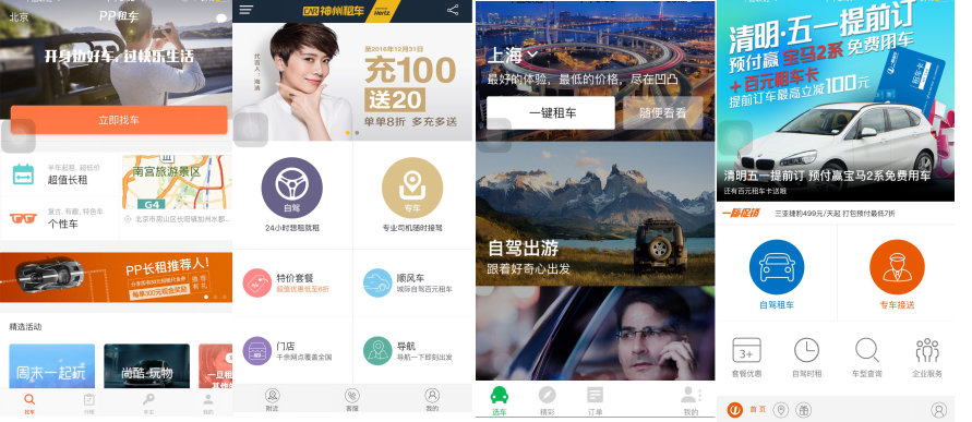 随着国人对出行品质的要求提高,再加上自驾游理念的风行,租车出行的新方式成了很多人的出行新选择,尤其是80、90后的新生代群体。据了解,目前市场上租车平台受欢迎的品牌主要有:神州租车、PP租车、一嗨租车、凹凸租车,究竟哪家平台体验更好?下面我们就从用户最关心的取还车便捷性、车型丰富度、价格、安全等角度全面解析四家租车平台,带你一起看看哪家强。 第一看便捷,它是用户最关心的问题 对于租车平台而言,便捷是用户选择的最主要原因,而这主要体现在用车流程(租车、还车)上,便捷取车、快速还车,让用户享受用车的乐趣。神州、一嗨租车主要在地铁、机场、火车站等主要公共交通场所开设门店提供自提取车,对于用户来说取车交通相对便捷。 而PP组车、凹凸租车采取地图定位取车的形式,相对而言,更人性化,用户有可能在自己居住的小区或者上班的写字楼停车场就能租到自己想要的车型,此外,PP租车还首创送车上门服务,用户下完单安心等车主送车上门即可,体验更加便捷。 第二车型丰富对比,看未来市场潜力 车型的丰富与否给用户提供了更多的选择。神州、一嗨租车主要以大众朗逸、起亚K5、丰田凯美瑞等经济型车,别克GL8、奥迪A6、宝马5系为主的商务车为主,主要考虑商务人士及自由行人士的出行需求;由于PP租车采用的是共享租车模式,车主将自身闲置的车放在租车平台上进行共享,车型相对而言更加丰富。除了神州、一嗨租车的常规车型之外,还有斯巴鲁森林人、奥迪TT、甲壳虫、minicopper、宝马Z4、北汽新能源等多种车型应有尽有。 此外,神州及一嗨租车更多的采用低配及标配车型,PP租车及凹凸平台由于是私家车,车辆配置覆盖中高配,给用户提供了更多的选择。截止日前,神州租车拥有近10万辆车,一嗨租车车队总规模3万多台,PP租车则拥有百万车辆,凹凸租车目前拥有10万辆车。 第三价格是促成租车交易的根本原因 使用租车平台的用户,价格也是他们考虑租车与否的主要因素。以大众朗逸为例,神州、一嗨的价格在240元左右;PP租车大众朗逸则为150元左右;凹凸180元左右;调查显示,PP租车等共享租车平台价格低于传统租车平台30%左右。 第四安全是用户使用车的过程中最关心的问题 除了便捷、车型丰富、价格之外,租车平台对于车辆安全方面保障的考量也至关重要。目前四家租车平台,都采用了与保险公司合作的模式,用户使用车的过程中一旦出现事故,都可以通过保险途径来解决。其中值得一提的是PP租车的保险方案提供最高100万的高额租车责任保险,给用户提供了高标准的安全保障。 总结:PP租车、一嗨、凹凸、神州四家平台在便捷性、车型丰富度、价格上还是有很大区别,对于热衷租车的80、90后,你们更喜欢哪个呢?