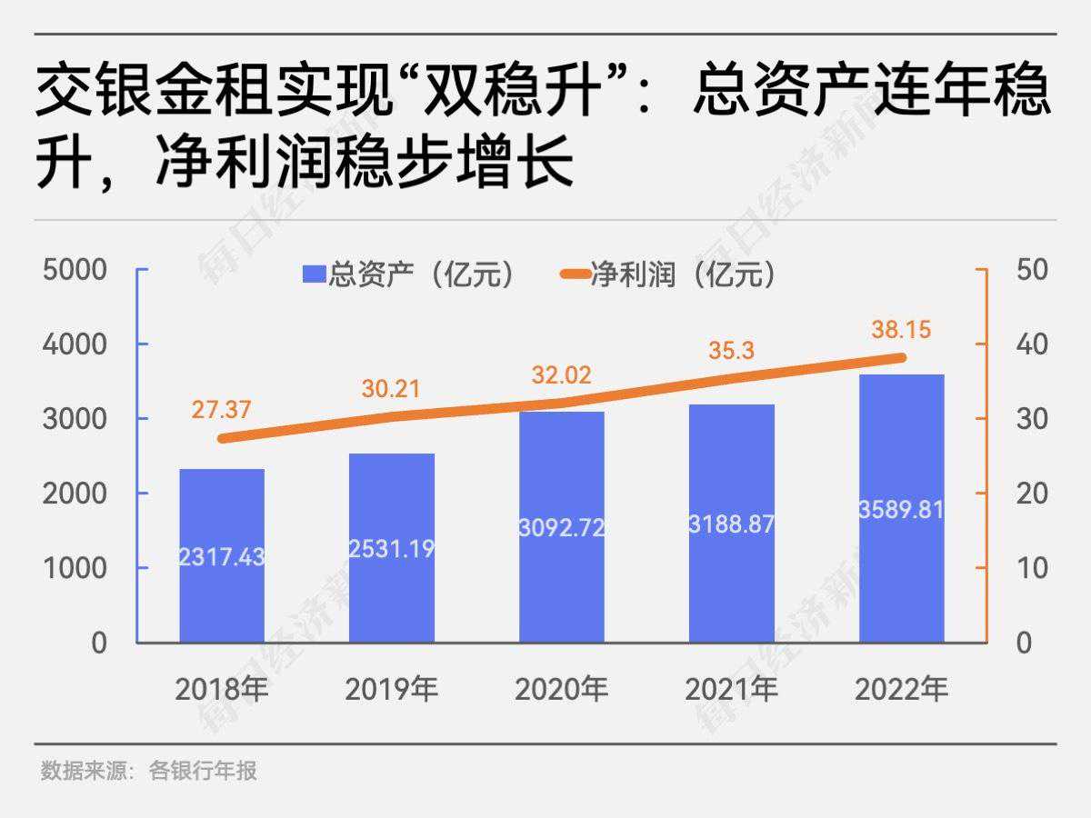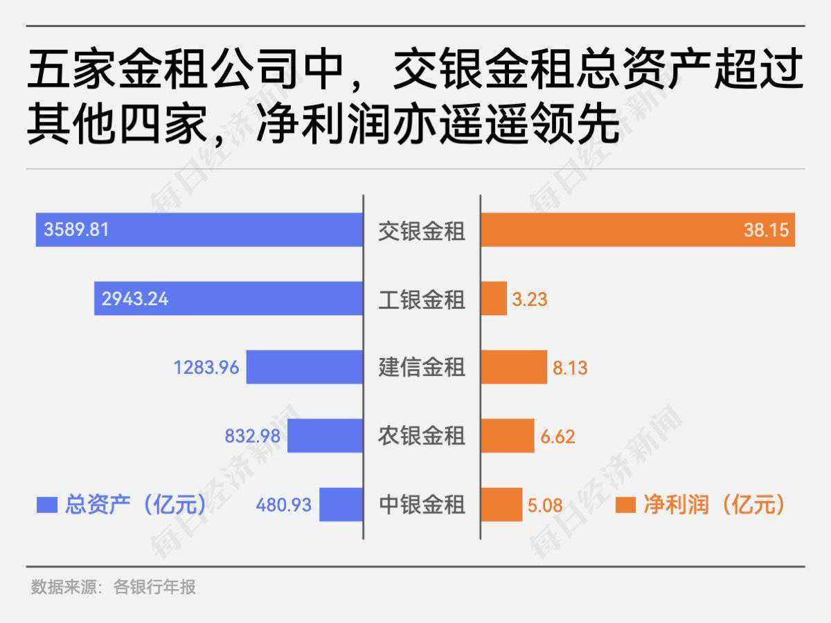 年报发布季结束后,各大金融租赁公司的业绩也揭晓,而具备银行背景的金融租赁公司往往坐拥更雄厚的资本实力。 《每日经济新闻》记者梳理各大国有银行2022年年报发现,除了邮储银行之外,其余五家(交通银行、工商银行、建设银行、农业银行、中国银行,下称“五大行”)均公布了旗下金融租赁公司的业绩。 五大行均通过设立子公司的形式开展金融租赁业务,分别是交银金融租赁有限责任公司(下称“交银金租”)、工银金融租赁有限公司(下称“工银金租”)、建信金融租赁有限公司(下称“建信金租”)、农银金融租赁有限公司(下称“农银金租”)、中银金融租赁有限公司(下称“中银金租”)。 根据五大行年报披露,截至2022年末,以上五家金融租赁公司资产规模合计超过9000亿元,去年共实现净利润超过60亿元。 梳理上述金融租赁公司近五年的经营情况,疫情等因素集中影响的痕迹清晰可见,不少金融租赁公司的业绩在2021年前后受挫,但也有金融租赁公司依然保持净利润与总资产双增。 毕马威在《二零二二年中国租赁业调查报告》中提到,2021年在国内外经济环境波动及新冠疫情延宕的多重因素影响下,国内经济承受住压力,显示了强大修复能力和持续增长韧性。中国内地租赁公司的资产规模持续增长,盈利能力整体有所改善,行业继续呈现稳健发展态势。 所谓金融租赁,是指由出租人根据承租人请求,按双方合同约定,从指定卖家购买承租人指定固定资产,在出租人拥有该固定资产所有权前提下,以承租人支付租金为条件,将一定时期该固定资产的占有、使用和收益权让渡给承租人。 中国银行业协会发布的《中国金融租赁行业发展报告(2021)》显示,截至2021年底,金融租赁行业总资产规模为3.58万亿元,同比增长3.69%;租赁资产余额3.33万亿元,同比增长6.08%。 五家金融租赁公司中,交银金租的业绩最耀眼,去年实现净利润38亿元,超出第二名近30亿元。在总资产规模上,交银金租亦是佼佼者,截至去年末,总资产为3590亿元,是五家中唯一突破3000亿元的金融租赁公司。 回溯近五年的经营状况,可以说交银金租实现了“双稳升”——总资产连年稳升、净利润稳步增长。根据2022年财报数据,总资产较2021年末增长13%,净利润较2021年增长8%。 资料显示,交银金租是交通银行全资子公司,于2007年12月正式开业,是最早一批获批成立的银行系金融租赁公司,注册资本140亿元。主要经营航空、航运及能源电力、交通基建、装备制造、民生服务等领域的融资租赁及经营租赁业务,为中国银行业协会金融租赁专业委员会第五届主任单位。 据交通银行2022年度报告披露,报告期末,交银金租总资产3589.81亿元,净资产410.89亿元;租赁资产3167.95亿元,其中航运、航空租赁资产总额在业内率先突破2000亿元。交银金租拥有和管理船队规模473艘,保持国内商船规模最大的租赁公司地位,机队规模277架,飞机租赁资产价值保持国内金融租赁行业第二、位居全球第十位。 另外,报告期内,交银金租实现净利润38.15亿元,而去年交通银行合并报表的净利润为920.30亿元,即交银金租的贡献比例约为4%。 值得注意的是,去年交银金租长三角区域租赁资产余额374.65亿元,较上年末增长18.94%,其中上海地区租赁资产余额252.45亿元,较上年末增长31.71%,并在临港新片区落地首个飞机租赁项目。 报告期内,交银金租实现新基建、新能源项目投放168.31亿元,同比增长86.45%;实现制造业投放92.12亿元,同比增长89.24%;在国内船厂下单53艘船舶,订单总额126.8亿元,支持全球载重吨位最大的多用途重吊船、国内首艘LNG双燃料动力的阿芙拉型油船等多个重点船舶融资项目;与中国商飞签署《50架C919和10架ARJ21飞机购买意向书》。 《每日经济新闻》记者还了解到,交银金租锚定“双碳”战略方向,积极推进绿色租赁,可谓亮点频频。 近日,交银金租与渣打银行及中国工商银行成功开展一笔5年期LNG船舶的项目融资,总金额2亿美元。该项目是交银金租开展的首笔与可持续发展指标挂钩的船舶项目融资,也是中国金融租赁公司的首笔可持续发展指标挂钩的船舶融资贷款。 另外,交银金租协同交通银行宁夏分行成功落地宝丰能源内蒙古300万吨“绿氢+”煤制烯烃项目的设备直租业务。该项目是全球唯一的规模化以绿氢替代化石能源生产高端化工产品的项目。4月末,交银金租累计投入3.38亿元,成功推动该项目建设的可持续发展。 交通银行2022年年报披露,交银金租人民银行绿色贷款专项统计口径下绿色融资租赁资产超过700亿元,成功发行全国首单金融机构、首单ESG自贸区离岸债券(明珠债)。 五家银行系金融租赁公司中,最年轻的当属中银金租。资料显示,中银金租成立于2020年,注册地位于重庆市渝中区,中国银行持股92.59%。 中国银行2022年年报显示,该行通过中银金租开展融资租赁、转让和受让融资租赁资产等相关业务。年末中银金租注册资本108.00亿元;资产总额480.93亿元,净资产112.11亿元,全年实现净利润5.08亿元。 作为后起之秀,中银金租2022年的净利润相比2021年的0.34亿元,增长了近14倍。 年报还显示,截至2022年末,中银金租累计投放融资租赁业务652.23亿元,其中绿色租赁占比37.04%,业务涉及智慧交通、可再生能源、先进制造、水资源循环利用等行业。 工商银行年报显示,截至2022年末,工银金租总资产2943.24亿元,净资产419.86亿元;2022年全年实现净利润3.23亿元