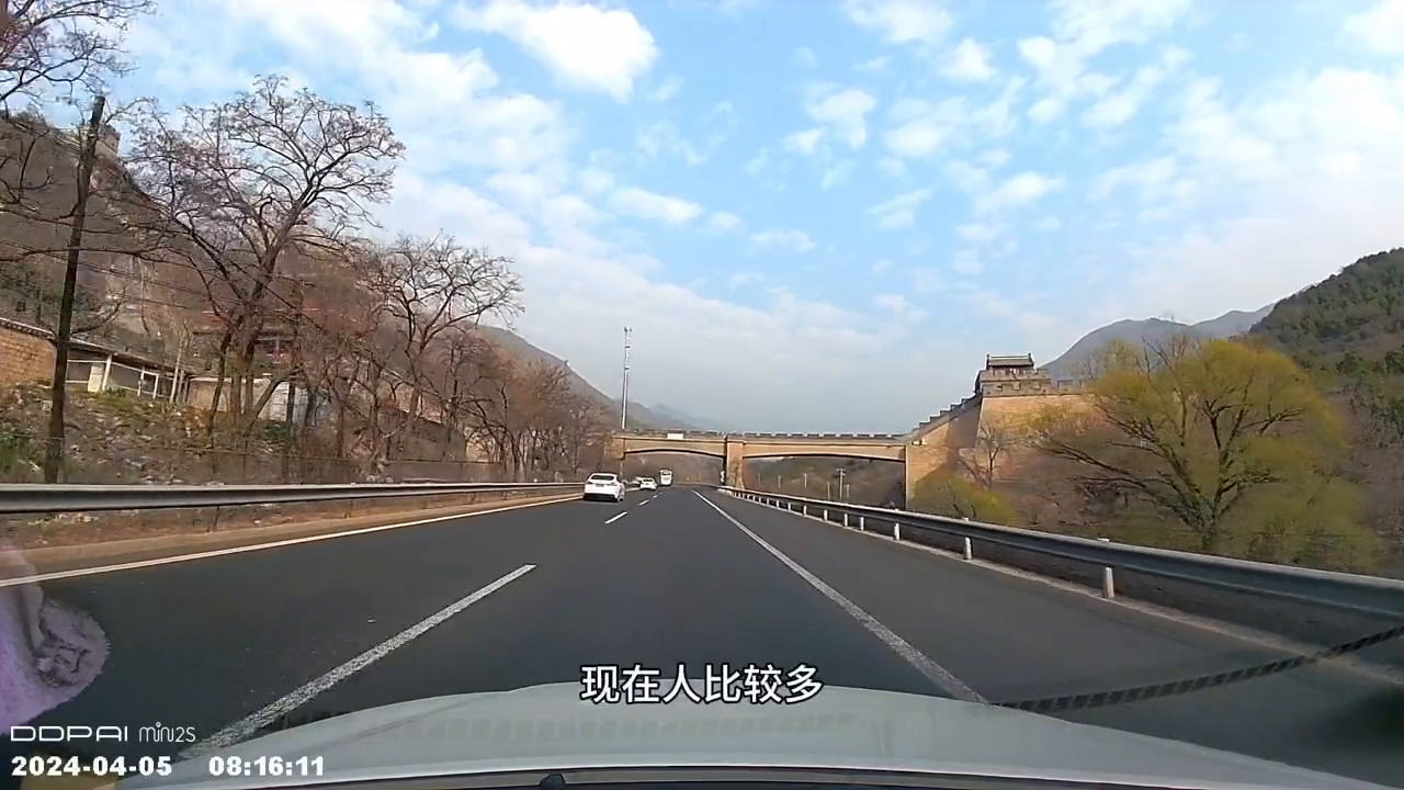 大家好,今天是4月5号,又接了一个去八达岭长城包车的乘客,一来一回是600块钱,现在去接乘客。 现在到乘客酒店门口了,跟乘客约好的是7点在这等会乘客。现在乘客已经上车了,出发去八达岭长城。 现在准备上高速,走清河收费站上的京藏高速,去八达岭方向。现在走到居庸关长城了,今天居庸关长城这边人也不少,爬长城的也挺多的。这边放假了,现在人比较多。现在这两边的风景还挺好,山上开的全是花,特别的好看。现在还有5公里就到八达岭长城了,这两边的风景现在特别适合观赏,开的全是花。 现在下高速了,到八达岭长城了,准备进停车场。今天人特别多,现在这块全是人,都是在这排队做摆渡车的,摆渡车是免费的。到了这边,这边现在还有点阴天,天气不是特别好。一般赶到节假日尽量早点出发,到这不排队。 大家好,现在乘客已经上山去爬长城去了,就在这个停车场等乘客回来,然后再给乘客送回市里。