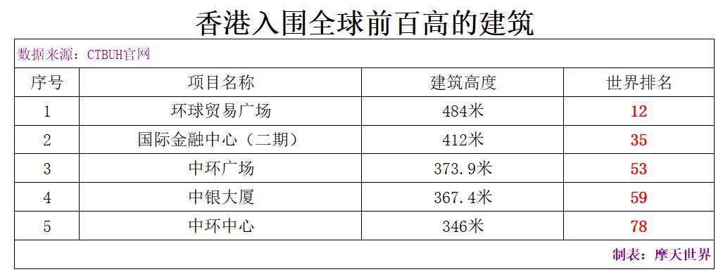 上图从左至右依次是:环球贸易广场、国际金融中心、中环广场、中银大厦、中环中心