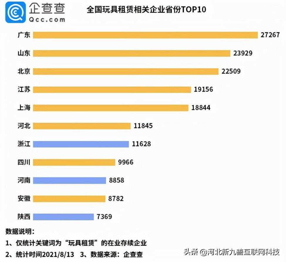 据悉,我国在业存续的玩具租赁相关企业有24万家,其中山东省有2.4万家,占全国总量的10%。从注册量上来看,2020年全国共新增5.1万余家相关企业,今年上半年新增2.1万家相关企业,其中山东省新增2902家。