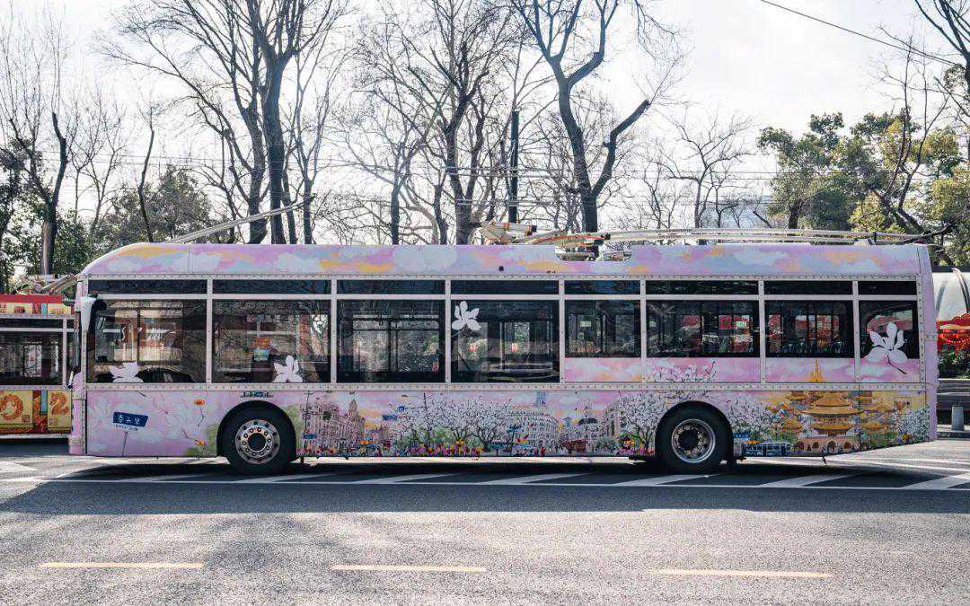春风渐暖 上海街头多了一份春日烂漫! 让春的气息在上海慢慢苏醒 在位于万航渡路的中山公园站,几辆公交20路整齐有序地停靠着。 其中,通体粉色的春日限定涂装车吸引了不少市民乘客的目光。这辆“开往春天的巴士”不仅颜色清新可爱,车身的图案也独特有趣,给人一种春日到来,上海街头繁花盛开、万物复苏的氛围感。 该涂装车以粉色为主色调,车身两侧绘制了公交20路沿线的标志性建筑,如百乐门、静安寺、南京路步行街、外滩等。 各处还点缀着大小不一的盛开的花朵,在一片春花烂漫的衬托下,尽显春日上海街头的美好。 除了车身涂装一新,车厢内还悬挂着粉色的小卡片,乘客只需用手机扫描二维码,就可以在公交车上进行猜灯谜的互动小游戏,进一步丰富乘车体验。 “穿了”新装的20路穿梭于上海的闹市区,伴随着“铛铛铛铛”的到站声,宛如一位移动的“上海浪漫”传递者。 20路公交车沿线经过黄浦区、静安区、长宁区,横跨上海市中心。接下来让我们看看20路把春日浪漫传递到了哪些地方吧! 20路终点站在中山公园2号门附近,让市民游客在等车、上下车的过程中,都能感受“花园车站”融入百年公园的美好意境。中山公园内古建筑修旧如旧,如同一幅将百年建筑、百年古树、百年公交、百年道路融于一体的城市公园画卷。 愚园路,是上海永不拓宽的64条马路之一,也是上海既文艺又富含历史底蕴的马路之一。年过百岁的它,成为静安不得不提的网红小马路,愚园路街区好玩好看的趣味活动也在不断上新。 静安寺站的对面就是静安公园,在繁华喧嚣的静安寺地段闹中取静。今年静安公园早樱已绽放,茶梅也不畏严寒,粲然绽放。 在南京西路陕西北路站下车,步行三分钟即可到达荣宅。“PARDA”与“上海滩保存最完好的大花园洋房之一”的双重名誉,让荣宅始终是陕西北路上最受瞩目的建筑。这座三层西式花园洋房仍保持着原有的风貌,彩绘玻璃是其最大的特色。 在 电视剧《繁花》热播之下,黄河路成了近期上海“顶流”,每天前来打卡拍照的市民和游客络绎不绝。乘坐20路,来 沿着 20路另一端终点站为汉口路四川中路,步行五分钟即可到达 -票价- 2元 -首末班车- 5:00-23:15 资料:上海发布、魔都citybus 图:朱昱伟