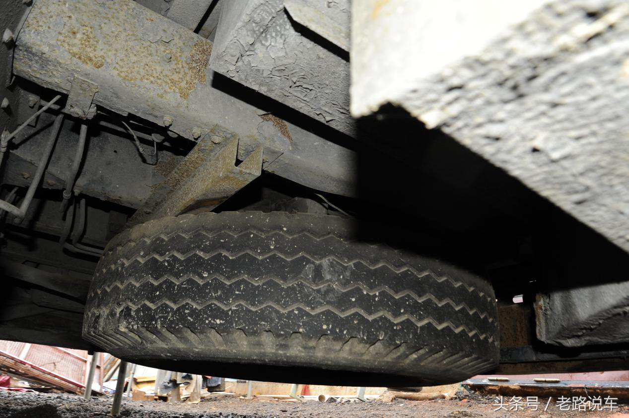 驻车制动并不是作用在车轮上的,而是作用在传动轴上的中央制动。在变速箱后方与传动轴的连接处有一个制动盘,通过与驾驶室手刹连接的钢索将拉力传动到制动盘,从而实现驻车制动。