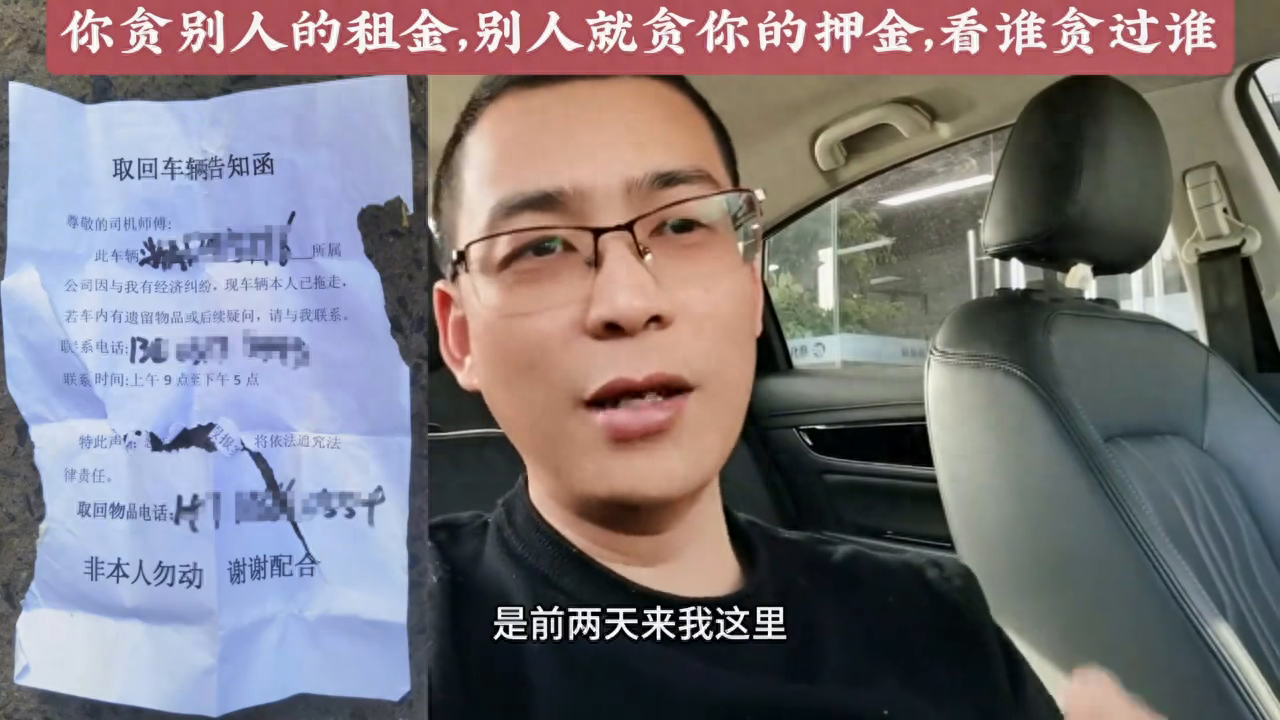 小心低押低租陷井,有1000多兄弟被拖。 我给你们看一下这张单子,看见了没有?这个叫什么?这个叫取回车辆告知函,此车辆所属公司因经济纠纷被拖走。这张单子是前两天来我这里租车的一位司机师傅给我的。据师傅说他的车子是晚上被人拖走的,早上准备出车的时候车子就不见了,地上就贴了一张这样的单子。 一打听不光是他的车被拖了,因为这家公司的车公司比较大,车子的也比较多。据他所说这次被拖的差不多有1000多台车子,就是我们杭州,都是只租了一个月到两个月的时间的,车子没了,押金同时也没了。来这里租车子的大部分都是看着车子的租金相对就说比较低的,比较便宜的,比较划算,所以才来的,没想到现在去了多的。 所以在这里我再次的奉劝各位司机师傅们,租车一定要记住以下几点,至于听不听说在于你自己。 ·第一个,租车子第一个要看车子续航,一定要看我说的续航,不是说官方续航,现在官方续航都是400多的,你要看什么?看实际续航。像现在这个天气再怎么样,你实跑最少也跑到300公里,否则每天你不是在充电就是在充电的路上,那你还跑个屁的车。 ·第二个,要看车况,不求这个车子有多新,至少之前不要在路上开车叮叮当当慌,一会这里坏,一会那里下,一会空调不行,一会这里又不行,这不天天都往维修店跑,那你还拿什么东西去赚钱。 ·第三个,看一下这个车子是不是内部车,是不是他们公司自己的所属车辆,有很多公司是外面拉过来的,也是交了押金,交了租金拉过来的,所以说你如果不注意这个东西,那半夜发生车子被拖走的。 ·第四个,车子被收走了,押金跟着一起跑路了,对不对?懂了没有? 还是那句话,不要一味的去追求低押金、低租金,这是人家放出去的饵,要贪租金便宜,人家就贪押金,谁贪得过谁?是不是在杭州?如果在这方面实在是拿不定主意的,多问问我。今天就这样,拜拜。