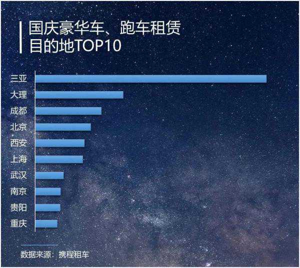 记者20日从在线旅游平台携程获悉,今年十一黄金周8天假期,预计六成国内游客选择自驾游,其中租车游客量有望创下历史新高。数据显示,海南成为租车预订人数最多的目的地省份,三亚为豪华车型、跑车订单最多的目的地城市。 在疫情防控常态化背景下,自驾车、房车因空间私密、出游灵活、行程自主等特点,成为人们出游的主要方式之一。从携程租车平台订单看,进入9月,国庆假期的租车已出现紧张形势,目前国庆订单中有超过50%的用户首次使用携程租车,这表明租车开始成为旅游中的重要选项。大量新用户的涌入,使得国庆租车的预订量暴增,预计今年黄金周将成为全年租车最高峰,并且有望超过去年。 今年国庆黄金周,哪些目的地的租车预订人数最多?携程租车数据显示,海南、云南、四川、青海、甘肃、广东、贵州、浙江、山东和新疆是人气最高的十大省市。从租车时长看,短期租车的占比并不高,3天以下的订单占比仅为15%,更多人选择了3-7天的用车时间,占比达到了67%。其中,海口以平均6天的租车时长跻身国庆租车时长目的地前十。 租赁豪车也成为国庆假期的潮流。数据显示,三亚稳居国庆假期豪华车型、跑车订单最多目的地排行榜首,游客愿意花费数千元甚至上万元租赁更舒适的车型提升休闲度假体验。