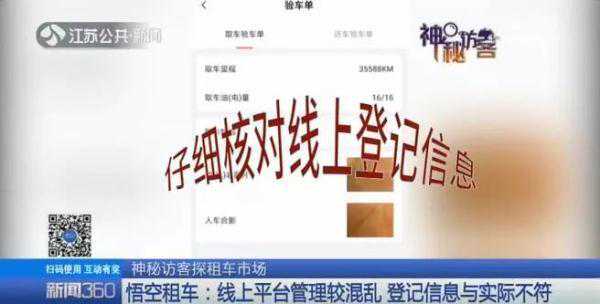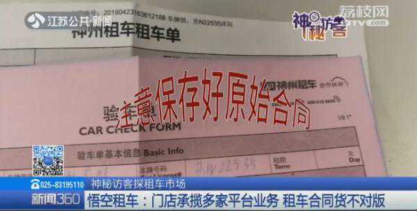 每逢节假日,不少游客会选择到目的地租车自驾游,十分方便。今年"五一"长假,江苏广电融媒体新闻中心《新闻360》栏目的神秘访客再次出发,对几大汽车租赁线上平台做体验式调查,给大家提供出行参考。 探访第一站:悟空租车线上平台。本期神秘访客童经理,是一位汽车租赁公司从业者,从业时间5年以上。 线上租车标价很实惠 实际却要掏三倍费用 4月22日中午,神秘访客通过"悟空租车"客户端订了一辆现代瑞纳小汽车,线上标注的租车价格是79元一天,相当便宜。 不过当神秘访客线上付费时,却发现另外要支付75元手续费以及基本保障服务费。神秘访客还注意到,"悟空租车"线上平台提供的第三人责任险,保额只有20万元。 但对于跑长途来说,这个险额明显不够,无形中要在线上增加保额费用,无形中提升了租车人的费用。 为了保证出行安全,神秘访客只好再掏钱提升保额。这样算下来,线上标价79元一天的租车价格,神秘访客最终支付了254元。其中,除了手续费外,基本保障服务费和增加保额的费用都需要按天计算。 下单后,神秘访客于当天下午1点赶到了悟空租车线下门店。可这家门店的门头却不是悟空租车,而是一家私人租车店。 悟空租车线下门店工作人员: 悟空租车只是一个平台,没有实体店的,我们给它提供车辆,它就只有一个平台,什么也没有,车都是我们公司自己的。 登记完身份证、驾照信息,工作人员交待了一些用车的注意事项。 悟空租车线下门店工作人员: 油是满箱,您到时候回来还满箱,如果您没加油,我们按市价另收50元加油费。 车辆状况总体不错 相关安全配套设备欠缺 取车、验车的过程比较简单,工作人员仅仅带着神秘访客查了一下车辆的"外伤",过程不到十分钟。 将车辆开出门店后,神秘访客立即做了第二次查验。检查后备箱时,神秘访客注意到,这辆车没有配备灭火器,备胎也比较破旧。“备胎看起来比较旧,看上去用了很多次,胎面上有不少裂痕。” 那么,驾驶体验又怎么样呢?神秘访客开了100多公里,城市道路和高速公路都走过,总体感觉车况不错。 免交押金只是噱头 门店称可以代处理违章 4月23日下午1点,神秘访客赶到门店还车。订车时,神秘访客通过支付宝平台申请了免交违章押金。还车结算时,门店工作人员表示,所谓免交押金只是一个噱头。 客户虽然不用掏现金来交违章押金,但支付宝平台上已经在客户的关联账户里冻结了相应款项,等到30天后平台查明客户的确没有违章,这笔款项才能解冻。 工作人员还表示,如果租车人发生了违章,他们可以代为处理。虽然这明显属于违规行为,但这名工作人员表示,这几乎成了租车行业的潜规则。 “你们也可以自己来处理违章,你们处理不了的话,150元钱一分我们处理。” 门店承揽多家平台业务 租车合同货不对版 4月23日下午4点,神秘访客来到悟空租车的另一家门店体验租车,这家门店挂的是神州租车的门头。 签订租车合同时,工作人员拿出的也是神州租车的合同,同时表示,除了悟空租车和神州租车,他们同时还承接另一家租车平台——凹凸租车的业务。 神秘访客在这家门店租了一辆大众帕萨特汽车。和前一家门店相比,这家门店的车况较为良好,相关配套工作比较齐全,行驶起来也比较顺畅。 线上平台管理较混乱 登记信息与实际不符 虽然车况不错,但神秘访客发现,这两家悟空租车门店的线上管理都比较混乱,不少车辆的线上登记信息十分随意,与线下的实际情况完全不同。其中,大众帕萨特的线上车辆信息,居然是一张手掌的照片。 “租的第一辆瑞纳,油表图片和我用车的图片是完全不一致的,第二个帕萨特,它根本就没有上传所谓的图片。” 神秘访客表示,如果租车人遗失了纸质合同,那么一旦发生纠纷,很容易出现扯皮的情况。 线上平台租车建议 1、取车时检查千斤顶、警示牌、灭火器、备用轮胎等应急设备的状况; 2、核对车辆的线上登记信息; 3、妥善保存原始的纸质合同,如发生纠纷应以纸质合同为准; 4、取车、还车时可以现场拍照录像,保留相关证据