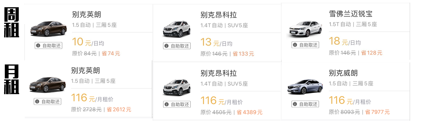 算到这你小小的脑袋可能会充满大大的疑问,说好的周租特价350元起、月租特价1350元起呢?这动辄3、5千的租金可是很多人半个月的薪水,这难道只是神州租车用来推广的噱头吗?