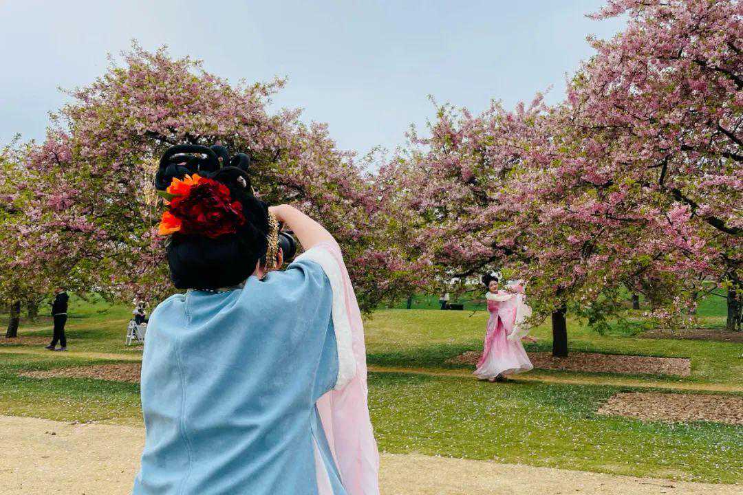 进入樱花季以来,上海市民游客赏花热情高涨。为了记录下浪漫的粉色季节,年轻人更是纷纷“卷”了起来。 在辰山植物园,带拉杆箱、梯子不足为奇,凌晨开始做妆发、造型的大有人在……记者今天在现场看到,开园不到半小时,800米长的河津樱就“长满了人”。 为了让游客玩得尽兴,公园不仅允许带梯子入园,还提供了摄影道具、帐篷租赁等一系列服务。 早上7点45分,辰山植物园距离樱花大道最近的1号门外已经有不少人等待开门,8点开园过闸机,第一波游客便一路小跑冲向长达800米的粉红色河津樱“隧道”,抢拍空旷无人的大场景。 “第一次当第一名!”小麦子的妈妈带着4岁的小麦子,成为了当天最早过闸机的游客:“因为美景嘛,人人都想来,很正常。赶第一波,人少的时候可以拍一些大场景。” 除了举家出游,约拍还是成当下年轻人喜爱的社交方式。 既要人少景美的优雅,又要走国风古装的精致妆发造型,李小姐和她的小伙伴以缈,凌晨两、三点就起床了。 这么拼的游客,不在少数。 “五点起床,从浦东过来,跟我一起的大概会来4个人。” “早上六点起来,从虹口打车过来,约了3个妹妹一起拍樱花的人像。大家都是过来欣赏樱花的,难免会树下每个地方都有人,要么就是早上开园8点就来。” 这届年轻人赶早的精神头,连喜欢早起的老年人都自叹不如。 “我是松江人嘛,经常来的。”于阿姨说,“以前9点不到进来,人还不是很多。今年你看,樱花大树下已经满了。” 回想多年前,樱花季最常见的不文明游园现象是拉拽花枝,摇动树干;同样是为了排出好看的照片,如今游客们选择带着笨重的梯子走进公园。在许多游客看来,这本身就是进步。 为了让大家玩得尽兴,辰山植物园干脆联合第三方,推出了樱花写真和拍摄道具租赁服务。 "梯子,这里租是20块钱,带过来也很麻烦。"摄影师“D叔”说,从妆发造型到小提琴、圆号等乐器,樱花大道旁的小帐篷里藏了不少宝贝:“用梯子的话,我们也会离树远一点,其实放在树里面也不太好看的。梯子也可以阻止很多人拉折树枝,。” 这不是辰山植物园第一次“宠粉”。多年前,800米长的河津樱大道就是一条水泥路,为了让游客离樱花更近一些,园方将硬化道路改为草坪。 经过多年努力,两排樱花树的枝干逐渐在空中“牵手”,才有了当下粉霞如云的景观。 辰山植物园工作人员王原原说,今年他们还推出了帐篷体验、樱花邮局、樱花盖碗茶等活动,和年轻人玩到了一起。“我们希望樱花季的服务是多元的,所以推出了樱花限定冰淇淋、樱花明信片、汉服体验、樱花怀旧金曲、樱花帐篷体验、樱花健康跑……用网友的话来说就是,我买的不是樱花,而是春天的气息。” 为了保障游园体验,避免客流扎堆,今年辰山樱花季的网红打卡点分散设立在不同区域。园方还主动联系了20多位人气博主、up主,帮他们一起挖掘“人少景美”的拍摄点位,邀请他们在自己的账号上分享“打卡攻略”,为网友提供参考。希望更多人可以在难得的闲暇时光,不留遗憾,释放自己的美。