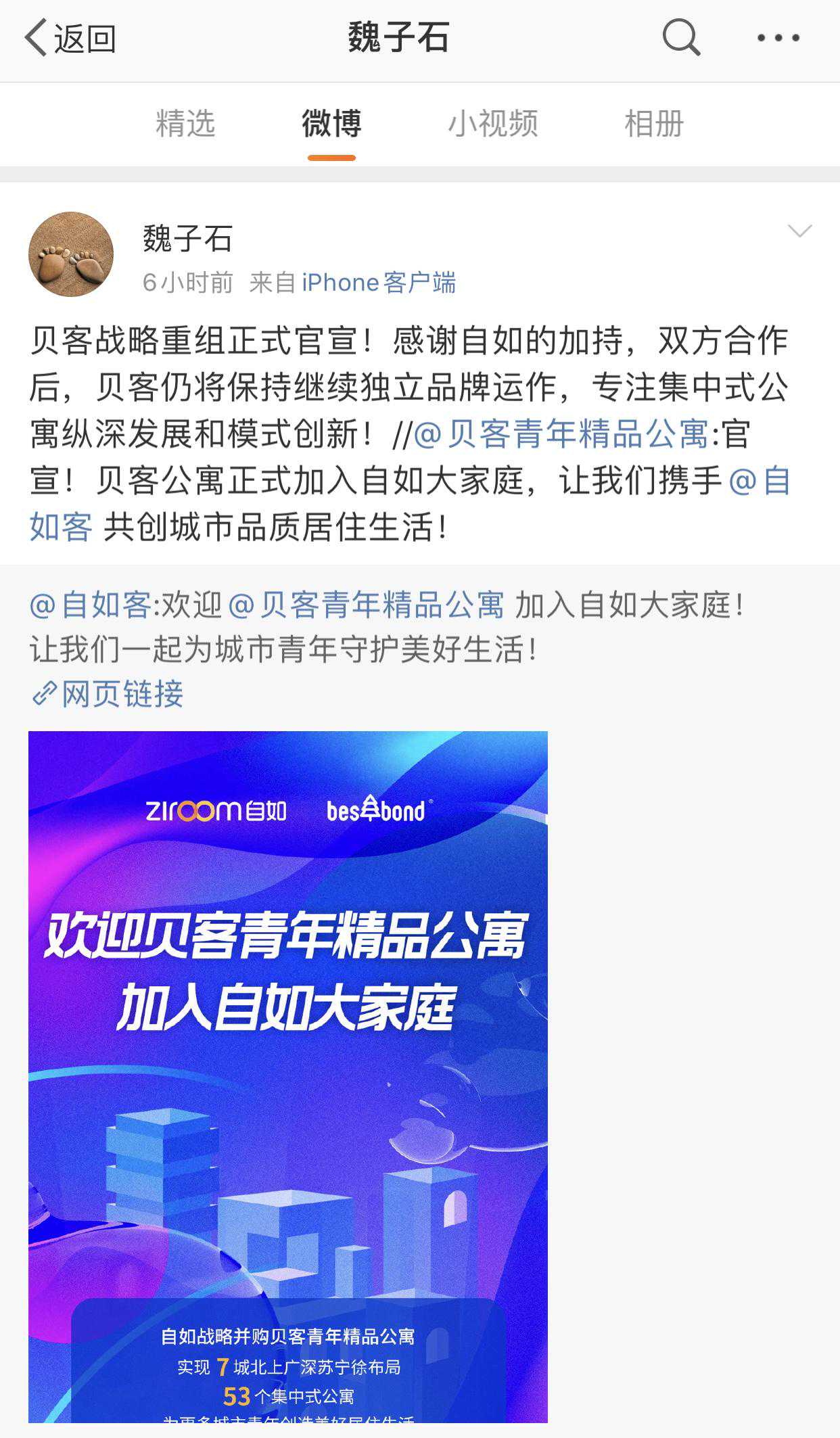澎湃新闻记者计思敏 在长租公寓行业频现暴雷事件下,长租公寓运营商自如开启并购模式。 11月30日,链家创始人左晖旗下长租公寓运营商自如正式宣布并购贝客青年精品公寓。并购完成后,自如将在北京、上海、广州、深圳、南京等7个城市运营53个集中式公寓项目。 贝壳方面并未透露此次收购涉及的金额以及具体收购比例。 贝客公寓是江苏贝客邦生活服务有限公司旗下公寓品牌。官网显示,贝客青年精品公寓于2014年起步于江苏南京,目前,其在全国拥有31个项目,主要为白领公寓,合计房源5000余间,分布在北京、上海、南京、苏州、徐州等地。 工商资料查询网站天眼查数据显示,股东结构方面,贝客公寓董事长王健持股36%,为贝客公寓大股东;江苏三六五网络股份有限公司持股20%;公司董事王军旗下南京齐贝投资管理合伙企业(有限合伙)持股16.53%;公司创始人兼CEO魏子石持股8.42%。 而成立于2011年的自如原为链家内部创业平台,并于2016年6月脱离链家独立运作。自如官网显示,其目前已完成A轮40亿融资,总部设在北京,在上海、深圳、杭州、南京、广州、成都、天津、武汉八座城市设立子公司,业务布局国内外十几座城市,服务近300万租客。目前,自如旗下有自如友家、自如整租、业主直租、自如豪宅、以及集中式长租公寓品牌自如寓。 自如方面表示,此次交易有助于快速提升自如在核心城市的集中式公寓规模,在不同目标市场落地多品牌策略,为城市青年提供更丰富和自由的房源选择。 贝客公寓创始人兼CEO魏子石则在其个人微博上转发并购消息并表示,贝客战略重组正式官宣,感谢自如的加持,双方合作后,贝客仍将保持继续独立品牌运作,专注集中式公寓纵深发展和模式创新。 业内人士指出,行业目前分水岭已显,自如作为分散式长租机构龙头企业,完成此次战略并购将有助于其在集中式与分散式长租机构市场占领导地位,并有望引领行业走出目前困局。 今年以来,长租公寓行业风波不断,包括位列长租行业第二的蛋壳公寓也发生资金短缺,拖欠业主、供应商和员工工资等情形。不过,目前蛋壳方面仍声称“没有破产,不会跑路”。 蛋壳公寓的现状绝非个例,今年以来,疫情冲击下的长租公寓行业更显脆弱。与此同时,三季度,部分城市出台政策措施加强对住房租赁金融业务的监管,对住房租赁企业经营模式的合规性进行审查等,也使得大量不合规经营的企业集中出现了“爆仓”、“跑路”的情况。 据克而瑞租售不完全统计,仅今年7、8月就累计有二十余家公寓“暴雷”。 克而瑞租售报告认为,当前,行业中存在有碍市场健康发展的“炒短线”经营模式,部分公寓企业“高进低出”、“长租短付”的经营模式影响了市场的运行。未来运营商之间的竞争格局将更加清晰,头部规模型企业竞争优势更加突出,运营能力欠佳的中小型企业将逐渐出局。后疫情时代,行业收并购或将成为常态,行业资源将会向头部企业集聚。 业内人士认为,今年长租公寓面临了很多问题,也说明经营是有很多困难的。不过自如的收购,也说明不是所有长租公寓都有问题,很多长租公寓依然有较好的能力去扩张。对于自如来说,后续需要积极和地方的租赁监管或备案体系对接,真正做到经营的稳健和租客的信赖。 校对:丁晓