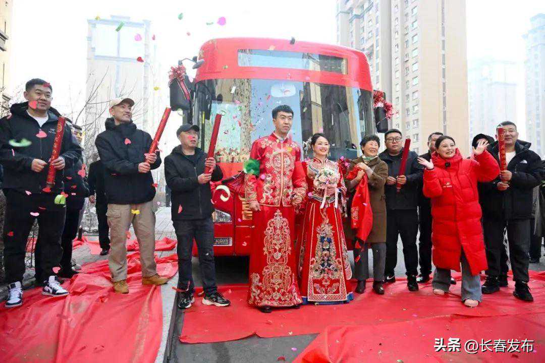 11日,农历二月初二,在这个俗称“龙抬头”的好日子里,一对新人带着亲友的祝福,乘上一辆喜庆的婚礼巴士,向着幸福一路前行。 这辆被装扮成婚礼巴士的公交车,“头”戴大红花,车身印有金色的“百年好合”字样,车窗上贴满了红色喜字,车内的红色座椅及靠垫和装饰拉花尽显喜庆祥和……当天上午,“身披彩装”的婚礼巴士引领着婚礼车队行驶在我市街头,成为城市里一道亮丽风景。 这是南关区民政局与长春公交集团合作,推出的我市首款“百年好合”传统文化中国红主题婚礼巴士,巴士为新能源纯电动公交车。 选用我市首款婚礼巴士的新郎是公交集团职工,对公交车有着深厚感情。恰巧婚礼巴士推出,一对新人毫不犹豫地选择公交车作为婚礼“头车”,此外,他们还规划了个性接亲路线,邀请亲朋好友同乘一辆车,共赏春城风光。 婚礼巴士的上线是南关区民政局实施婚俗改革的一项生动实践。“2023年9月,南关区被确定为省级婚俗改革试验区,随即,我们在婚俗改革创新方面持续发力。”南关区民政局婚姻登记处负责人郭宗英表示,经过多轮商讨,他们与公交集团达成共识,将联合推出系列婚礼巴士。公交车变身婚礼巴士,作为一种环保与创新相结合的婚礼形式,使婚礼浪漫而不浪费、简约而不简单。下一步,随着婚礼巴士的陆续推出,南关区民政局与公交集团还会精心打造设计深情紫色调的幸福相约主题、浪漫粉色调的世纪情缘主题等不同主题的婚礼巴士,满足不同人群的个性化需求。