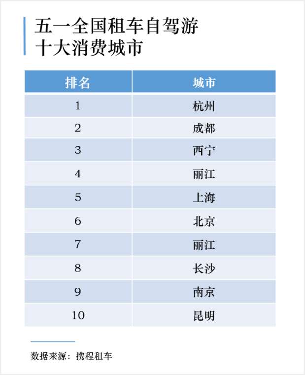 为更好享受假期,不少租车自驾游用户都增加了预算,选择更长的租期、更好的车型。根据平均订单价格,五一全国租车自驾游十大消费城市为杭州、成都、西宁、丽江、上海、北京、丽江、长沙、南京、昆明。其中,杭州人消费能力全国第一,五一假期租车客单价1233元,排名最高。