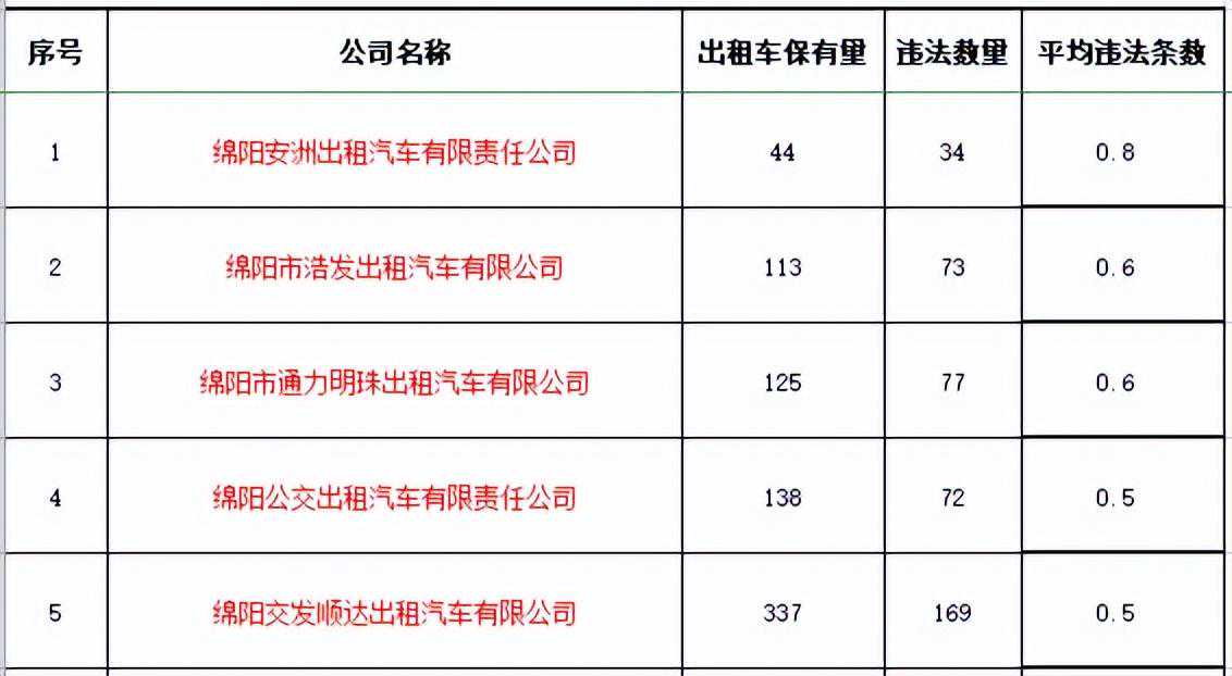 出租车、网约车 是城市出行不可或缺的交通工具 特别是近年来 绵阳旅游的游客越来越多 出租车、网约车也从侧面 反映出绵阳这座城市的文明与热情 但有部分出租车、网约车驾驶员 随意变道、闯红灯、不按导向行驶 给道路交通安全埋下隐患 下面是2024年3月平均违法条数较多企业及违法较多车辆 出租车 平均违法条数较多企业 违法较多车辆 网约出租车 平均违法条数较多车属企业 违法较多车辆 营运企业和车属企业:要切实履行交通安全主体责任,健全完善长效机制,加强对驾驶人的交通安全日常教育管理,主动承担企业社会责任,筑牢安全生产防线。 营运车驾驶人:要提高安全意识,严格遵守道路交通安全法律法规,安全文明出行。