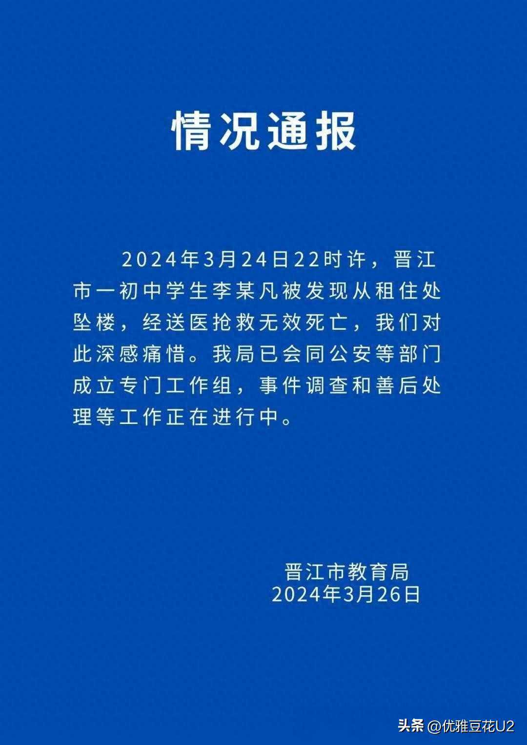26日,晋江市教育局发表了一份情况通报,内容让人震惊,也引发了广泛的讨论和质疑。这份通报所涉及的事件,关乎每个人的切身利益,让我们一起来看看其中到底发生了什么,以及这背后可能隐藏的更多信息。 为了解决这一严峻的问题,晋江市教育局迅速行动起来,表示将对相关责任人进行严肃处理,并加强对学校管理的监督和检查力度,确保类似事件不再发生。此外,教育局还承诺将加强对学校师生的心理健康教育,提升学校管理水平,营造更加和谐的教育环境。 从这起事件中,我们可以看到教育管理中存在的一些深层次问题。首先,学校管理层在处理突发事件时的应对能力和危机处理能力有待提升。其次,学校的心理健康教育工作还需加强,以帮助学生更好地处理情绪和解决问题。最后,教育部门应加强对学校的监督和检查,确保学校管理规范、环境和谐。 在这场风波中,我们不禁想起一句古语:“教育无小事,管理有大责。”教育是关乎国家未来的大事,而管理教育的责任更是重大。只有加强管理、提升教育质量,才能让每个学生都能享受到优质的教育资源,健康成长。 总的来说,这起事件虽然给我们敲响了警钟,但也提醒了我们,教育管理中还存在不少问题需要解决。我们期待教育部门能够以更加积极的态度,采取更加有效的措施,推动教育事业的健康发展。 对于教育领域的未来,我们可以期待着更加严谨和规范的管理机制的建立。随着社会的不断进步和发展,教育的重要性日益凸显,因此,我们需要更加严格的管理措施来确保教育的质量和公平性。同时,也需要更加注重学生的全面发展,培养他们的创新能力和实践能力,以适应未来社会的发展需求。
