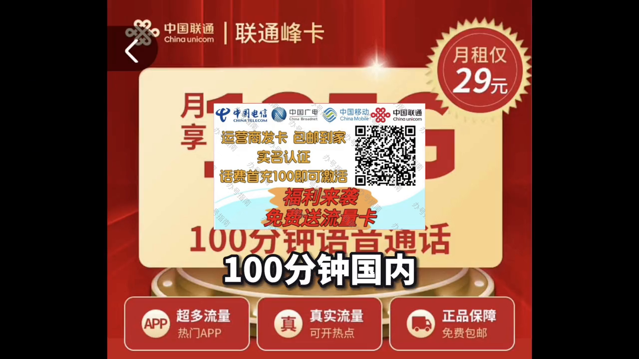 今天给大家推荐一张张峰卡。这张卡是一张长期固定月租套餐的手机卡,每月仅需29元就可以获得135G全国通用流量加100分钟国内免费通话。而且这张卡无合约,可以作为主卡使用,非常适合作为主卡的工作党、学生、宝妈。下面我来详细介绍一下这张卡的优势。 ·首先这张卡的月租价格非常便宜,29元每月,而且是长期固定月租,不需要担心月租会随着使用时间的增加而增加。 ·其次这张卡的流量非常多,每月有135G全国通用流量,可以满足您的日常使用需求。 ·最后这张卡还有100分钟国内免费通话,可以帮助您节省通话费用。 这张峰卡是不需要签订合约的,所以不需要担心会被绑定一些不必要的业务,也不需要担心合约期结束后会被强制升级。这张卡是可以直接购买使用的,非常方便。 如果您是一名工作党或者是一名学生或者是一名宝妈,那么这张峰卡非常适合您。它不仅价格便宜,而且流量和通话时长都足够用,可以让您省下不少钱。