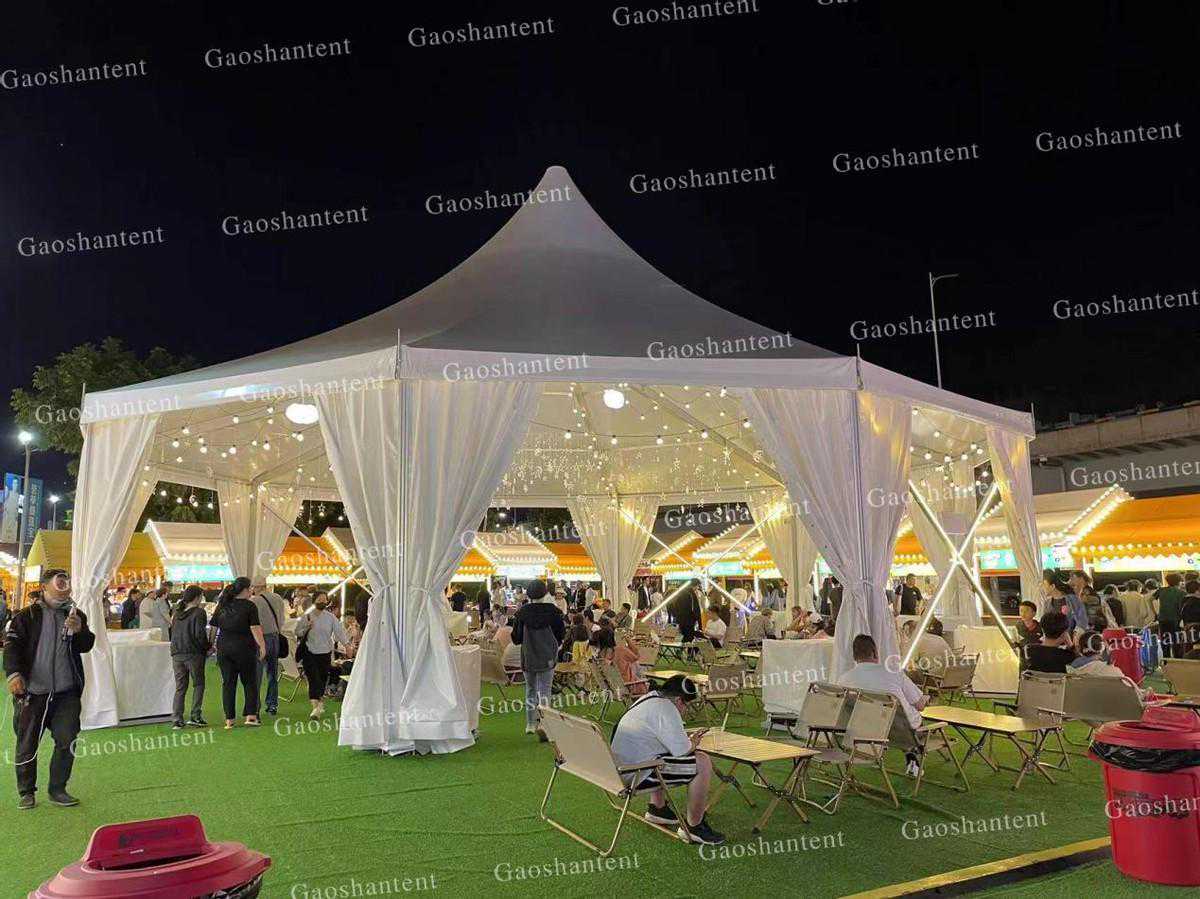 户外婚礼中,气候变化是无法避免的,而篷房可以有效地为新人和嘉宾们提供遮风挡雨的保护。同时,在极端天气情况下,篷房也能够为婚礼提供安全保障。 临时篷房可以为婚礼提供一个轻松和互动的环境。年轻人通常喜欢户外活动和亲朋好友的互动,临时篷房可以创造出一个非正式、放松的婚礼氛围,让来宾们更加自由自在地享受婚礼。 与搭建永久性建筑相比,临时篷房的成本较低,对于一次性的婚礼活动来说,可以节省大量费用。临时篷房通常采用简单的结构和材料,搭建和拆除比较容易,可以在较短时间内完成,方便婚礼策划和组织。 需要注意的是,在选择和使用临时篷房时,要确保其结构稳固、安全可靠,并符合当地的建筑规范和安全要求。此外,根据天气和季节的不同,可能需要额外的设备和设施,如加热或通风系统,以确保婚礼的顺利进行。 临时篷房可以根据需要进行定制,可以根据婚礼规模和主题进行调整和装饰。年轻人可以根据自己对婚礼的想象和喜好,自由选择帐篷的形状、大小、颜色和装饰,创造出符合自己个性和风格的婚礼场地。