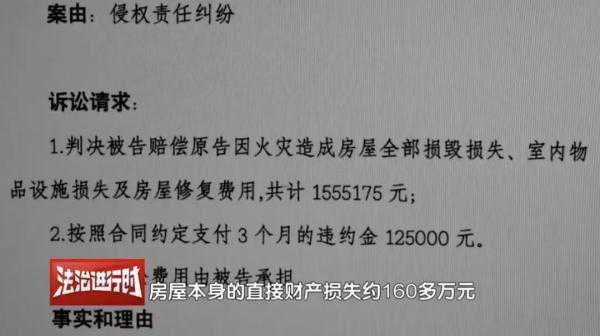 出租房屋签完合同还没有一个月 房子失了火 损失超160万 收藏的古玩字画也毁于一旦 这个责任谁来担? 案情回顾 2020年12月,薛先生和一家文化传媒公司签订租赁合同,将自己位于北京市朝阳区的一套房子出租给该公司,租期为5年。签完合同还没有一个月,凌晨4点多,该房子发生了火灾。 经现场人员报警,消防救援人员迅速赶到现场扑灭了大火,但房子已被烧得一片狼藉。经鉴定,房屋本身的直接财产损失约160多万元。 经现场勘查,消防部门未能找出具体起火原因。火灾认定书载明:起火部位位于建筑物四层东侧沙发位置处,火灾原因可排除外来火源、用火不慎和遗留火种引发火灾的因素,不排除电气线路故障引发火灾的因素。但是关于起火点的具体引发起火的原因或者物件是什么,消防机关没有做出进一步的认定。 接到小区物业的电话后,薛先生赶到了现场。看到家里一片狼藉、损失惨重,薛先生认为自己的损失应该由文化传媒公司承担。 房屋的主人薛先生将承租方起诉到法院,要求其赔偿两部分财产损失:因火灾引起的房屋本身的直接财产损失约160多万元以及房屋因为火灾导致不能出租期间的租金损失。 一审判决 一审法院确认了薛先生的财产损失金额,并依据消防机关作出的结论进行了判定,对消防机关事故责任认定书中所说的,不排除电气故障引发火灾的因素进行了具体分析。 根据事发当时起火的时间是凌晨4:00~5:00,基本可以排除承租人使用大功率电器的可能性。在这种情况下,不能排除房东提供的房屋自有装修带有的电路引发故障的因素,所以这种情况下判定房屋的主人承担70%,也就是主要的赔偿责任,由承租公司承担30%的赔偿责任。 一审法院判决,文化传媒公司赔偿薛先生50余万元。双方均不服一审判决,向北京市第三中级人民法院提起上诉。 二审判决 文化传媒公司认为 电子电器故障应该是房屋原有建设时候铺设的电路质量问题,或者是房屋自身的一些用电设计可能不太合理,导致起火,跟正常的使用用电器没有关系。 文化传媒公司之所以提出这样的质疑,是因为薛先生的房子存在违建。 北京三中院石煜法官表示,这个房子是一个1层到5层的整栋楼房,其中4层的部分是加建的部分,没有建筑规划审批手续且经过消防验收,5层是露台部分,其中房屋起火的位置是发生在4层,造成的主要财产损失也是4层5层的部分。扩建楼层的财产损失按照一定比例不予确认。 根据消防部门的现场勘验笔录显示,起火点附近的墙壁插座内的金属部件未发生熔融痕迹。 薛先生认为 金属环线没有熔融断裂,就不可能是强烈的电线和插座发生短路,如果强烈的电线和差错发生短路的话,那必然会发生熔融断裂的情况,所以他的房屋没有任何的质量问题。 起火点附近的墙壁内电线没有发现熔痕,可以排除房屋自身电路问题引发火灾。在起火点附近有许多电器,既有房东薛先生提供的,也有承租人自行置办的,不能排除任何一方所有的电器出现故障,引发火灾的可能性。 最终,三中院对双方当事人承担火灾责任比例进行调整。 二审判决依据 二审主要考虑了以下几个方面的原因: 1.是法院法官关于火灾发生原因的重新的审查认定与思考。 2.考虑到承租方作为承租人对房屋在事发时是实际控制并且使用的,更有可能在第一时间发现房屋的火灾隐患以及对火灾事故进行制止。在此情况下,承租人没有尽到相应的义务,应当加大其所承担的责任。 3.考虑到房屋的加建部分没有经过审批、规划、验收等情形,视为房屋的出租人扩大自身损失的行为。 最终判决 北京市第三中级人民法院终审判决,房东薛先生和文化传媒公司对薛先生各承担50%的财产损失,文化传媒公司向薛先生赔偿90余万元。文化传媒公司表示,此次火灾也造成他们收藏的古玩字画等物品损毁,将另案起诉。