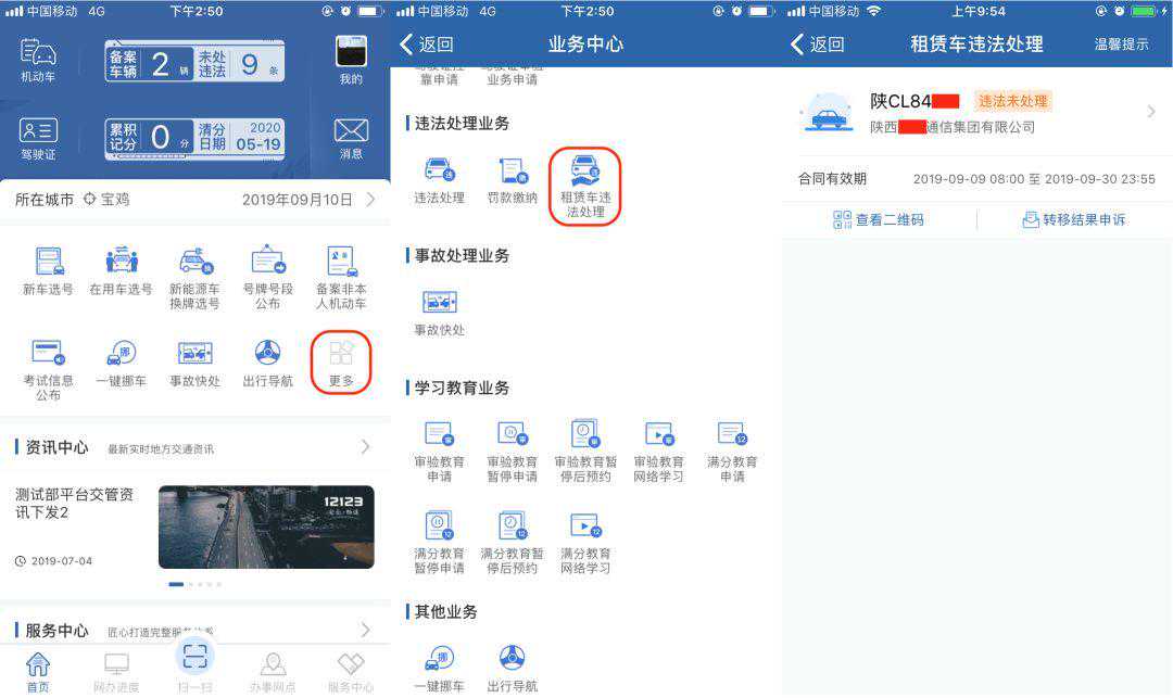 上周,公安部召开新闻发布会,公布即将于9月20日起推行的公安交管6项新措施。这6项新措施中,其中一项是“租赁车交通违法处理简捷快办”,即: 承租人可以通过“交管12123”APP网上查询、自助处理租赁汽车交通违法,免去多地奔波;对未及时处理的,公安交管部门可将交通违法记录转移到承租驾驶人名下,减轻租赁企业运营负担,将惠及300多万名承租驾驶人、2万多家租赁企业。该项措施自9月20日起在江苏、四川先行试点,年底前全国全面推行。 通过“交管12123”APP应该如何办理?需要走什么样的流程?来,本文给你答案。 租赁车交通违法处理 租赁车临时备案 除承租驾驶人外,还允许2个驾驶人通过“交管12123”APP临时备案租赁车。临时备案成功后,驾驶人可以通过“交管12123”APP查询租赁合同期间的交通违法记录,并可以处理备案后至租赁合同期限届满发生的交通违法。 需要临时备案的驾驶人使用“交管12123”APP【扫一扫】功能,扫描承租驾驶人提供的二维码,采集与承租驾驶人关系信息,进行实人认证后完成备案。 交通违法转移申诉 承租驾驶人或临时备案驾驶人在租赁合同期满30日后仍未处理车辆在租赁期间的交通违法记录的,租赁企业可以申请将交通违法记录转移至承租驾驶人。 公安交管部门审核通过租赁企业的转移申请后,承租驾驶人对转移的交通违法有异议的,可以通过“交管12123”APP在5个工作日内提请申诉。公安交管部门审核转移申诉通过后,不再转移交通违法记录。