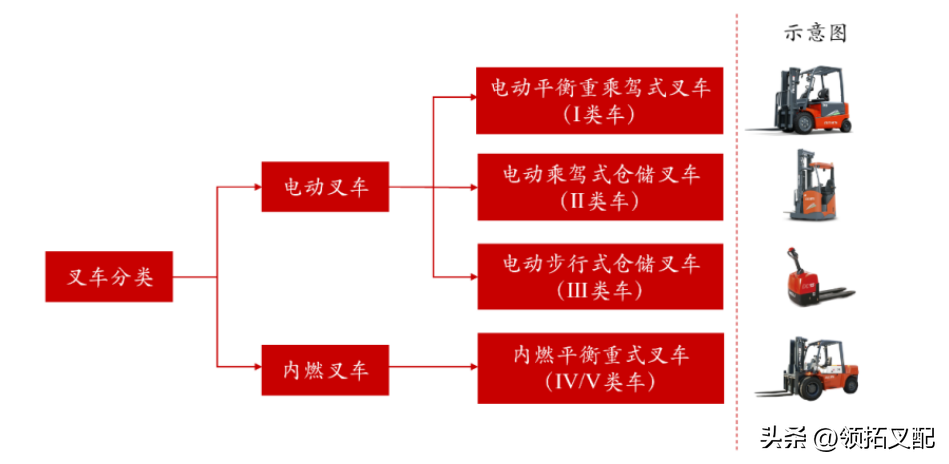 叉车行业有望迎来新一轮景气周期我国叉车年销量已超百万,下游应用领域广泛叉车是物料搬运作业的重要设备,可分为五大类。叉车又称机动工业车辆,具有装卸和搬运功能,是物料搬运作业的重要设备,是实现物流机械化,提高作业效率的主要工具。中国工程机械工业协会工业车辆分会将机动工业车辆分为五大类,分别为电动平衡重乘驾式叉车(I类车)、电动乘驾式仓储叉车(II类车)、电动步行式仓储叉车(III类车)、内燃平衡重式叉车(实心轮胎)(IV类车)、内燃平衡重式叉车(充气轮胎)(V类车)。叉车与国民经济紧密联系,下游应用领域较为广泛。今天领拓机电跟大家一起学习下叉车各大系统的零部件都有哪些。 1、叉车液压系统的零部件有:液压接触器总成、叉车液压模块、叉车升降操作杆、叉车升降开关、叉车液力至优叉车液压系统配件压FET模块、叉车液压电容、叉车液压二极管、叉车液压电脑板、叉车保险线、叉车液压电机总成、叉车液压齿轮泵总成、叉车液压油、叉车液压油箱总成、叉车液压滤芯、叉车液压油管、叉车高压油管、叉车液压多路阀总成、叉车多路阀电磁阀、叉车起升侧油缸总成、叉车中间主油缸总成、叉车倾斜油缸总成、叉车液压回油管等等来组成。 2、叉车制动系统的零部件有:刹车踏板,刹车总泵,刹车分泵,刹车油管,刹车片,刹车轮毂,刹车线,手刹总成,刹车修理包,刹车开关,刹车弹簧,刹车座等等来配件组成。 3、叉车转向系统的零部件有:叉车转向齿套、叉车方向盘、方向机、方向感应器、方向万向节、方向电机总成、方向拉杆、方向器总成、方向蜗杆总成、方向推杆、方向球头、后桥总成、后桥衫套、后桥三连板主销、后桥滚针轴承、后桥平面轴承、后桥三连板、后桥转向油缸、后桥转向油管、转向液压齿轮泵、转向电机马达、转向蜗杆、转向传感器、后桥横置拉杆、后桥转向节、后桥转向主销、后桥转向羊角总成、叉车轮子、后桥转向后轮总成等等来配件组成。 4、叉车传动系统的零部件有:离合器、变速器、驱动桥如后桥壳、差速器壳、差速器行星齿轮、差速器半轴齿轮、半轴、主减速器从动齿轮齿圈、主减速器主动小齿轮、加油口盖、驱动桥盖、纸垫、轴承、轴承垫、调整垫片、差速器轴承座、油封、密封垫、放油螺塞等等配件构成。 5、叉车车体车架的零部件有:叉车安全带、座椅等配件。 6、工作装置系统的零部件有:货叉、叉架、门架、起升机构配件、门架倾斜机构配件、滚轮、横移机构配件等等的各种不同配件构成。 7、叉车电气系统的零部件有:蓄电池、显示屏、主板、控制器、接触器、模块、电池插头、插座、喇叭、方向盘总成、仪表总成、钥匙开关、档位开关、充电插头、各种照明及警示信号装置及其它的电气元件组成。 8、叉车发动机系统的零部件有:叉车启动机/启动马达、大修件大修包、气门、气门座圈、气门导管、曲轴瓦、连杆瓦、缸套、活塞、活塞环、连杆铜套、止推片、气门挺杯、气门挺杆曲轴、连杆总成、凸轮轴、凸轮轴瓦、机油冷却器及盖、气门帽、气门弹簧、气门摇臂、气门帽、气门调整螺丝、气门锁夹、气门摇臂轴、 水泵、风扇叶、风扇皮带、风扇皮带轮、曲轴皮带轮、节温器、节温器、水箱、上下水管、水泵小水管、高压油泵总成、泵芯、高压油泵电磁阀、喷油器、喷油嘴、缸体润滑喷嘴、机油喷管、进油管、汽油泵、柴油格、 机油泵、输油泵、放水阀、曲轴齿、曲轴花键、曲轴皮带轮、曲轴皮、带轮固定螺丝、时归带、平衡带、风扇皮带、风扇皮带张紧轮、时规皮带张紧轮、平衡皮带张紧轮、平衡轴、平衡轴齿轮、凸轮轴齿、高压油泵齿、液压泵齿、过桥齿轴、过桥齿、汽缸盖、缸体、液压泵链条、时规链条、正时室盖、飞轮壳、飞轮、飞轮齿圈、机脚垫、进排气软管涡轮增压器等发动机系统的配件构成。 农民工就业方向转变,叉车主要下游行业面临劳动力结构性短缺。根据国家统计局的数据,近年来农民工的行业结构发生转变,主要是从制造业、建筑业等传统行业转向住宿餐饮、居民服务修理等服务行业。制造业作为叉车行业的主要下游行业,农民工的流出会使企业面临更大的“用工荒”,企业更有动力用叉车替代人力;仓储物流业同样是叉车行业的主要下游行业,虽然农民工在该行业呈流入趋势,但流入的农民工主要从事的是快递员等服务性质的工作,叉车的主要应用场景——物流仓库同样面临着人力短缺的问题。 制造业和物流业劳动力成本提升,“降本增效”需求更加迫切。根据国家统计局的数据,我国制造业、交通运输仓储邮政业城镇私营单位就业人员平均工资呈逐年增长趋势,2021年均已突破6万元,分别达到63946万元和62411万元。劳动力成本的提升将会推动制造业与仓储物流业转型升级,企业降低生产成本,提高生产效率的需求更加迫切,用叉车进行人工替代的需求将越来越多。 叉车具备工业消费品属性,人工替代效应逐步增强。叉车具有明显的工业消费品属性,以电动步行式仓储叉车为例,其价格便宜,通常应用在物流仓库、制造业工厂等终端使用场景;对人力有较强的替代作用,其结构与传统人力板车差别并不大,只是驱动方式由人力变为电动,可以将其理解为电动化板车。电动步行式仓储叉车与传统人力机械的应用场景重合度
