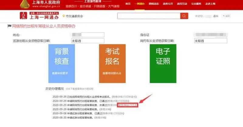 好消息!从事出租汽车驾驶员“一件事”于今天正式上线“一网通办”啦,申请人足不出户就能网上办理。该功能涵盖:出租汽车驾驶员从业资格证申请、背景核查、考试报名、证件核发等,在办理流程上实现“一次告知”、“一表申请”、“一口受理”、“一网办理”、“统一发证”、“一体管理”。详见下文~ 从事出租汽车驾驶员“一件事” 让您足不出户网上办理 为企业和群众高效办成“一件事”是今年全市“一网通办”重点工作之一。根据《关于以企业和群众高效办成“一件事”为目标全面推进业务流程革命性再造的指导意见》相关要求,市交通委会同市公安局、市大数据中心等部门,扎实有序推进从事出租汽车驾驶员“一件事”,从申请人实际办事需求和存在问题出发,通过跨部门跨层级的业务流程革命性再造,开发建设了“背景核查”、“考试报名”、“电子证照核发”等全程网上办理功能,让申请人足不出户就能网上办理。 改革有哪些亮点? 1实现全程网办 优化改造前,申请人办理此事项跑动次数为3次(不含考试),包括:申请人至各区受理点提出背景核查申请(1次)、核查通过后至报名点进行考试报名(1次)、考试通过后至窗口领取证件(1次)。 优化改造后,申请人可直接登录“一网通办”,在线进行背景核查申请、报名考试、核发证件等操作,实现了足不出户网上办理。 2实现零材料 申请从事网约车驾驶员,优化改造前需提交申请材料6份,优化改造后无需提交材料,直接从电子证照库获取材料,材料减幅100%。 申请从事巡游车驾驶员,优化改造前需要提交申请材料7份,优化改造后仅需提供初中以上文化程度证明1份材料。 3实现时间减半 优化改造前,背景核查时间为20个工作日。优化改造后,背景核查时间为10个工作日。 4实现电子照片采集 申请人可直接从全市“电子照片库”获取电子照片,在线提交,节省了拍照片的费用。 5实现全过程短信提醒 办理过程中背景核查结果、考试报名、考场安排等信息均会推送至申请人预留手机,让申请人能及时了解办理进度,提高了办理体验感。 如何在线办理“一件事” 从事出租汽车驾驶员“一件事”办理对象分为从事巡游出租汽车驾驶员、从事网络预约出租汽车驾驶员。具体办理流程如下: 从事巡游出租汽车驾驶员线上办理 01系统登录 按顺序选择个人办事—按部门—上海市交通委员会—出租汽车驾驶员从业资格证核发↓ 选择巡游出租汽车驾驶员从业资格证新增办理情形↓ 02人员背景核查 提交申请后可以查看办理情况,审核结束后会将通过/不通过的结果以短信方式告知↓ ①审查通过后进入“一网通办”中可以看到通过的情况,并且打印背景核查通过回执↓ 03考试报名 背景核查通过后,一年内可以申请报名考试。可结合实际情况,在需要考试前申请考试报名↓ 进入考试报名页面后,请根据实际情况填写、检查各项报名信息。其中取证方式影响考试通过后是通过邮寄方式拿取相应证件还是前往窗口拿取相关证件。 巡游车从业资格报名时须选择参加培训,在报名后尽快前往线下办理点进行培训报名,并由培训点安排具体考试信息↓ 查看自己之前上传的申请材料是否有误,是否需要重新上传并且调用2寸照片的电子证照,上传初中文化程度证明↓ 请打印申请书并前往培训报名点报名参加培训。后续考试会由培训点安排↓ 04获取资格证 考试通过后,如果选择到场领取证件,请在通过考试三个工作日后,至窗口领取证件。如选择快递领取,请保证填写的邮寄地址有人收取快递,并保持手机畅通。同时可以通过电子证照,查看自己的职业资格证信息↓ 从事网络预约出租汽车驾驶员线上办理 选择网络预约出租汽车驾驶员从业资格证新增↓ 网约车从业资格报名时可以自主选择是否需要参加培训。如参加培训,请在报名后尽快前往线下办理点进行培训报名,并由培训点安排具体考试信息。如不参加培训,后续将以短信告知具体考试时间,在获悉考试时间后返回本页面打印考试通知单↓ 查看自己之前上传的申请材料是否有误,是否需要重新上传并且调用2寸照片的电子证照↓ 如选择参加培训,请打印申请书并前往培训报名点报名参加培训。后续考试会由培训点安排↓ 如选择不参加培训,系统将会尽快排考,排考成功后将会短信通知具体考试时间。请在排考成功后打印申请书,按排考时间参加考试。