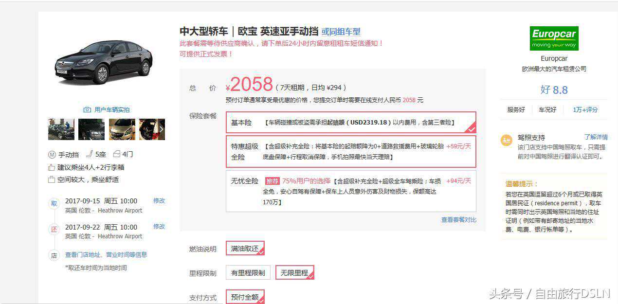 我在国外自驾也有些年头了,驾驶右舵车也不是第一次了,不过在英国租车、自驾的感受还是有些不同,和有需要的朋友们分享一下吧。关于其他国家租车情况,可以参考我之前的《说说租车那些事儿1-3》。 租车前要考虑清楚几个问题——选择何种租车方式?买什么保险?租什么车型?提供什么材料?出了问题怎么解决? 租车的方式大致可分为两种:一是直接在国外租车公司租(网上下单或到店直提),二是通过国内第三方平台下单,然后直接到店提车。不做预定就到店直提的不确定性较大,等候时间不确定,车型也要根据当时店里所能提供的车辆来决定,所以对于有自驾计划的人来说,这种方法不太可取。 直接通过租车公司官网下单,需要逐个对比各个公司的车型、价格等因素,这样比较麻烦,不如通过国内的第三方平台帮助你对比、分析租车信息,然后选择出合适的车辆。同时,国内某些(不是所有啊)第三方平台的服务更有保障。比如zuzuche,我使用了多次,他们的客服特别给力——在我和当地车行解决问题遇到困难时,可以现场拨打当地的第三方客服电话寻求帮助,他们能协助我有效解决。售后方面,他们的客服每次都会一直跟踪并解决问题。 买保险有用吗?有用!有用!!有用!!!国外租车时,经常是车辆使用费用并不高,高的是保险费用。当你在租车公司官网下单时,可能会被高额的保险费吓到。但是,在国外开车并不那么“保险”,出问题的概率并不低(我这次就遇到两回爆胎,在新西兰还被飞来石子把前风挡玻璃震裂了),而维修、救援费用却很高。因此,一定不要图便宜而省略保险费。 一般租车公司都会强制你购买基础险(就是几乎什么都没有的那种),附加险或者全险的价格会特别高,如果你不购买,到了店里取车时还会遇到店员的强烈推销。因此,根据我之前的经验,还是选择“联合式”的购买最为合适。只在租车公司购买基本险,然后从平台购买“超级补充全险”,费用要便宜不少。出现问题的话,有些可以等同于租车公司的全险直赔,有些需要先行垫付再回国报销。 选择车型真的要因人而异了。如果你是土豪,那么随意挑吧;如果你和我一样是经济型旅游,那么肯定希望租一款性价比高的吧?如果你的随身行李比较多,要考虑后备箱的容量。如果同行有老人小孩,需综合考虑安全性和舒适性。还要参考自驾的路况,路窄停车困难,尽量不租大型车;有越野涉水路段,首选四驱车,等等。要特别注意一点,不同国家地区所对应的相同车型价格可能会相差非常大。 举个例子,在新西兰租的车以日系为主,价格普遍不贵(至少比国内便宜不少);在美国租车,美系的SUV特别便宜,一般轿车也不贵;而在英国租车,SUV特别贵,普通的CRV和RAV4都非常贵,而选择中大型轿车却相对便宜(C系的高配奔驰不比RAV4贵)。 综合考虑种种因素,我们此行6人预约了两辆中大型的欧宝,日均500多元/辆(含保险);实际提车时拿到的是同组车型的斯柯达,免费升级了一辆奔驰C220d。 至于需要提交的证明材料,我最想说的是——国际驾照不需要!不需要!不需要!不要再被任何人忽悠骗钱。 如果你有“国外驾照+国际驾照IDP”,当然没问题了。如果没有,那么有两种简单的方式租到车,“国内驾照+翻译公证件”或“国内驾照+租车公司翻译件”。某些国内租车网提供的低价格“国际驾照认证件”不是国际驾照IDP,其实质就是英文翻译件而已;如果免费提供,拿一个可以用;如果需要花钱,就省了吧。 其实,只要该国家承认或默许中国驾照,那么你的驾照就是合法的,公证件都是多余,只要提供翻译给租车公司看就可以了。如果该国明确拒绝中国驾照(比如日本),即便你有公证件也是非法,租车公司可以租给你车,但是万一遇到警察就会有大麻烦。 在租车、行车甚至还车后出了问题怎么解决?这些事情我都遇到了——没办法,就这么走运!千万不要着急,没有解决不了的问题,而且解决问题本身就是一种旅途经历,是一个成长的过程。 先说说提车的经历吧。伦敦3天靠公交,离开时到大英博物馆附近的一个非常隐蔽的地下停车场提车。由于提着行李影响速度,预感到可能会迟到时,我们电话联系了Europcar,说明情况并得到许诺(不会影响取车)。 请特别注意,机场那种大店的车辆多,迟到一点可能影响不大;但是市内的一些店里存车不多,调度也没那么方便,如果你迟到,到时很有可能拿不到预定的车型。我之前在美国租车时发生过因迟到换店取车的事,所以这次特别谨慎。 还好,到达时正好是我们预约的时间早上9:00。店内只有一名貌似土耳其的顾客准备取车,他应该是提前预定但是没有购买全险的那种,结果在这已经耽误很久了,提不到预定的车型,好容易有车了,又被“警告”不买全险的危险。 不管他了,说我们吧,几乎相同的问题,没有车!店员说可以给我们升级奔驰,然后带我们看车、试车,一切似乎顺利,然而他告诉我们每天要多付20镑,感觉被骗了!我们不同意,理由很简单,我们是提前预定并支付全款,没有合适的车是你Europcar的事,凭什么让我们埋单?!突然,有车了,但是手动挡!右舵(自动挡)还好,反正我习惯,但是右舵手挡有些不适应,而且还有那么多山路和城市路要开,很不方便。那么,只有一辆车合适,另一辆要等——可能一小时! ......此处略去2小时发生的事情......不是语言问题,是思维逻辑的事,真的是很难沟通。果断给租车网的客服打电话,客服让我