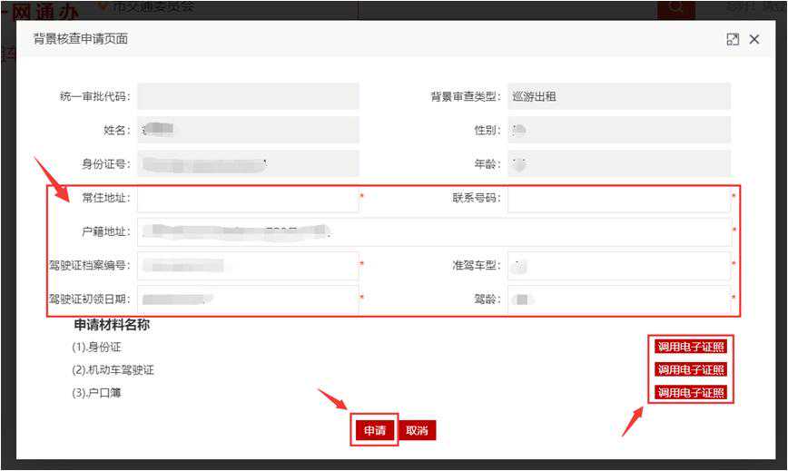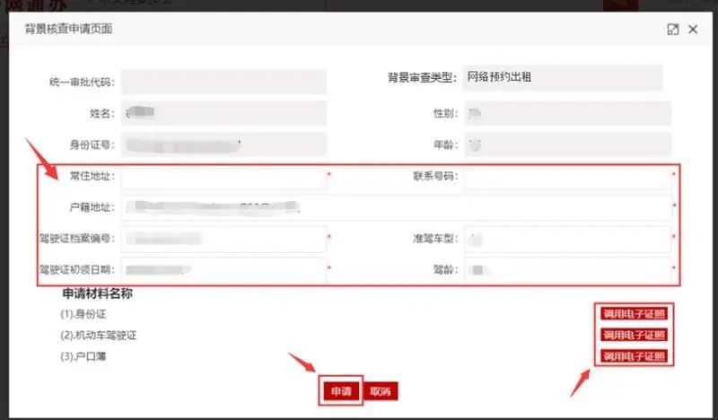 查看自己之前上传的申请材料是否有误,是否需要重新上传并且调用2寸照片的电子证照↓