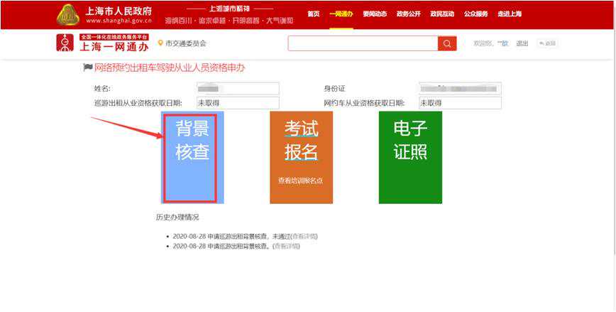 ①审查通过后进入“一网通办”中可以看到通过的情况,并且打印背景核查通过回执↓
