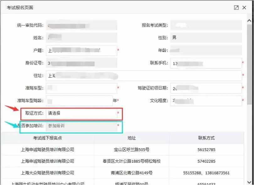 进入考试报名页面后,请根据实际情况填写、检查各项报名信息。其中取证方式影响考试通过后是通过邮寄方式拿取相应证件还是前往窗口拿取相关证件。