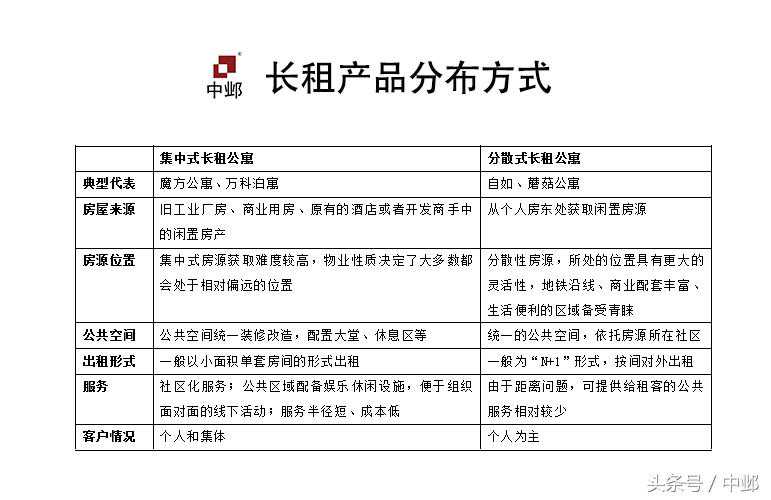 昨日,深业集团长租公寓产品分享会以“租居新时代”为主题举行,现场发布了一则重大消息:位于深圳核心豪宅区域的原高品质住宅项目——深业上城停止出售,转为深业集团四条长租公寓产品线的其中一条,是专门针对顶级客户的租赁需求而打造的产品。深业集团高层在发布会上透露,未来5年内,深业集团在香港屯门及深圳核心地段的许多项目都将陆续从销售转为租赁! 虽然从政策到市场动向都在证明房地产市场正从销售时代转向租赁时代,但是像深业集团这样将位于一线城市核心地段的高级住宅直接转为租赁的做法极为少见。深业上城主力户型为130~200㎡左右的3房和4房为主,周边等面积户型租金在13000~38000元/月不等,房价在11万/㎡左右。这样的产品在国内租赁时代刚起步时便投入市场,是否合适?中邺今天将从目前市场上主力长租产品类型讲起,与您探讨长租公寓产品走向。 按照空间分布情况,长租公寓可以分为集中式和分散式两种。集中式长租公寓房源一般是整栋或整栋中的几层,而分散性公寓一般从个人房东处获取房源,每套房都处于相对独立的环境中。 从对比中我们不难发现,集中式与分散式长租公寓从房源获取到日常管理及服务提供均有不同的特点。根据其分布方式,我们来比较下两者的优劣: 1.规模扩张 分散式长租公寓由于房源选择灵活,房源获取难度较低,对改造能力要求低,更有利于在短期内积累大量房源进而实现快速扩张。而对于集中式公寓,整栋或整层的可供出租改造的物业比分散式房源要少,而且要经过较长的谈判期,需要较高的整体改造装修能力,所以在规模扩张方面缺乏优势。 2.资产增值 从资产增值来看,如果是通过购买而获取的整栋长租公寓房源,经过整体改造运营,从建筑本身到外部环境都会得到很好的改善。随着资产价格的上升,资产增值效果明显,如新派公寓2013年初推出的新派公寓CBD旗舰店,由整栋收购的大厦改造而来,短短五年时间其房产增值就已达3倍多。这种情况对于集中式长租公寓存在着更大的可能性,而分散式公寓由于房源一般属于个人房东,资产增值受益方为房东所享有。 3.运营服务 从运营服务来看,集中式公寓由于房源集中,易于设置服务设施和开展服务活动,将更便于管理,且运营成本较低;而房源之间都存在一定距离的分散式长租公寓,由于服务半径拉长,将较难展开服务活动,且运营成本高。 深业中城租赁产品属于集中式长租公寓房源,由于集团本身拥有多年的地产开发和项目运营经验,再加上整体周边环境极好,深业中城应该属于较为有潜力的投资型集中式租赁产品。问题在于该产品线是针对顶层人群的高品质生活需求而打造,只租不售的方式限制了个人收益。而在市场刚进入转型期的当下,国内高端人群的高品质生活需求是否会以较快的速度从购买转向租赁?中邺认为可能还需要时间和市场信心的支撑。不过该项目的预计运营时间在2020年-2023年,还是留有一定的缓冲空间。 B、企业自持的房源,自己出租。这类产品对应的就是上文所说的深业上城; C、企业长租的他人房产。目前市场上的大量长租产品均是以这种形式出现,包括中邺在进行产业空间运营之余,也正在针对城中村、旧厂房、旧宿舍等多种业态进行空间包装与长租公寓产品开发。 整体来说,这就是多主体供应、多渠道保障,租购同权的住房体系。 仍然处于初始发展阶段的长租公寓市场与其他任何新兴事物一样,都面临着诸多挑战。然而市场跨越式发展的大幕已经拉开,与之相关的政府、企业等多方的共同努力下,市场最终会被引领着走向合理健康的发展之路。 多主体、多渠道及租购同权是保障租赁市场产品多样化、竞争市场化、价格合理化的一个重要手段。但值得注意的是,房价之所以遭到国民诟病,是因为房产上有太多特殊价值附加,体现在价格上便是价格的上扬。深业集团作为大型国企,有义务也有责任在租赁产品的设计上注意到这一点。同时我们也能看到大型国企在资源、实力、企业公民义务方面,都更具备引领市场发展的能力与责任,在构建良性循环可持续发展的市场格局上能发挥极大的作用。