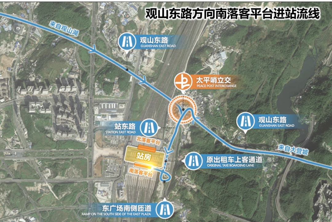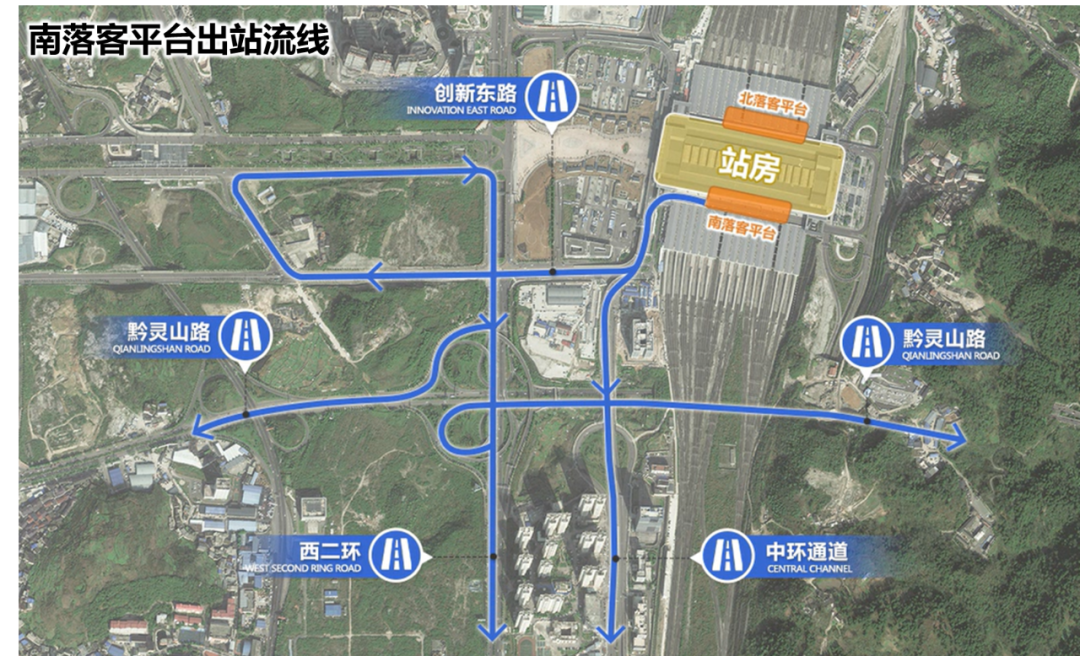 建议私家车充分利用东广场地下停车场 为提高私家车接客效率、缓解西广场地下停车场引入网约车后造成的交通压力,经贵阳市交委、贵阳市公安交管局、观山湖区政府等相关部门共同研究,建议私家车驾驶员充分利用地下停车场资源,尽量去往东广场地下二层停车场接客。 同时,为进一步提高东广场地下空间利用效率,贵阳北站综合交通提质升级改造工作组正在积极研究东广场地下一层空间的未来利用和交通组织方案。 出租车接驳组织有重大调整 经贵阳市交委、贵阳市公安交管局、观山湖区政府、贵阳市出租车(网约车)协会等相关部门共同研究,本次贵阳北站交通提质升级改造工作,对出租车接驳组织进行重大调整。 为使出站乘客更加方便快捷地乘坐出租车,贵阳北站出租车上客区已于北京时间2023年4月17日24∶00,调整至贵阳北站西广场地下一层出租车专用上客区。同时,站内外相关交通引导标识、标牌系统已基本完成更新。敬请广大抵达贵阳的铁路旅客出站时沿最新标志系统进入出租车上客区排队上车。 为增加出租车蓄车空间,提高出租车运行效率,贵阳北站综合交通提质升级改造工作组正在有序推进出租车蓄车区和出口通道的扩容改造工作。同时为减少排队候客时间,请各位出租车司机师傅留意贵阳北站下客高峰时刻表,选择适宜时段进站接客,减少道路拥堵。 网约车场地搬迁 为使出站乘客更加方便、快捷地乘坐网约车,提高网约车运行效率,经市交委、市公安交管局、观山湖区政府、市出租车(网约车)协会等相关部门共同研究,决定将网约车上客区搬迁至西广场地下停车场B区,本项改造工作已于2023年04月17日24∶00完成。 为给乘客提供舒适的候车环境和良好的出行体验,近期拟在出站通道1号门处设置网约车旅客候车休息区。 为使网约车司机方便快捷地进入上客区载客,西广场全部3个地下车库入口均对网约车开放。网约车进入地库后,可以根据专用标识、标线、标牌(更换中)快速、准确地进入网约车上客区。 东广场地下通道功能调整 为引导老城、乌当等地区的车流方便快捷地进入贵阳北站南落客平台,提高北站交通运行效率,经市交委、市公安交管局、成都铁路局贵阳车站、铁路公安处交警支队、观山湖区政府、市出租车(网约车)协会等相关部门共同研究,本次贵阳北站交通提质升级改造,将对东广场原有出租车通道功能进行优化调整。 为确保东广场地下一层通道(原出租车通道)发挥对车流的引导功能,贵阳北站综合交通提质升级改造工作组从保障行车安全、交通流线顺畅等角度出发,正在完善通道内、外相关安全设施建设。 提请进入东广场地下通道的驾驶员,注意通道内新增限速、安全等标志、标牌,保障行车安全。 贵阳北站南进站口即将开启 为提高贵阳北站交通运行效率,方便乘客出行,经贵阳市交委、贵阳市公安交管局、观山湖区政府、成都铁路局贵阳车站和铁路交警等部门共同研究,决定4月23日凌晨05∶00整打开南进口,迎接凌晨06∶00第一班旅客进站,全面实现“南进南出、北进北出”的交通组织目标。 对利用南落客平台送客的小汽车进出流线说明如下: 1.观山东路大营坡和观山湖方向的小汽车,通过太平哨立交驶入站东路,直行经原出租车上客通道和东广场南侧匝道后左转进入南落客平台落客。 2.中环的小汽车通过中环通道和调头匝道后,直行右转进入圣泉立交,调头后进入阳关隧道、站东路,沿站东路北行至站房南侧,左转进入南落客平台落客。 3.花溪区、经开区的小汽车经西二环从圣泉立交右转进入阳关隧道和站东路,左转进入南落客平台落客。 4.南落客平台的小汽车落客后经匝道进入中环通道、创新东路、西二环和黔灵山路驶离贵阳北站。 贵阳北站综合交通提质升级改造工作组将根据贵阳北站打开南进口,出租车、网约车上客区位置的调整,更新站内外标识系统、电子地图及手机导航信息,敬请广大市民、旅客朋友注意变化,服从现场交通疏导人员指挥,按序出行。 贵阳北站周边主要城市道路标识系统和地图导航也将同步更新,敬请广大乘客和驾驶员注意! 责编:李萍 审核:曹钦永 终审:刘露