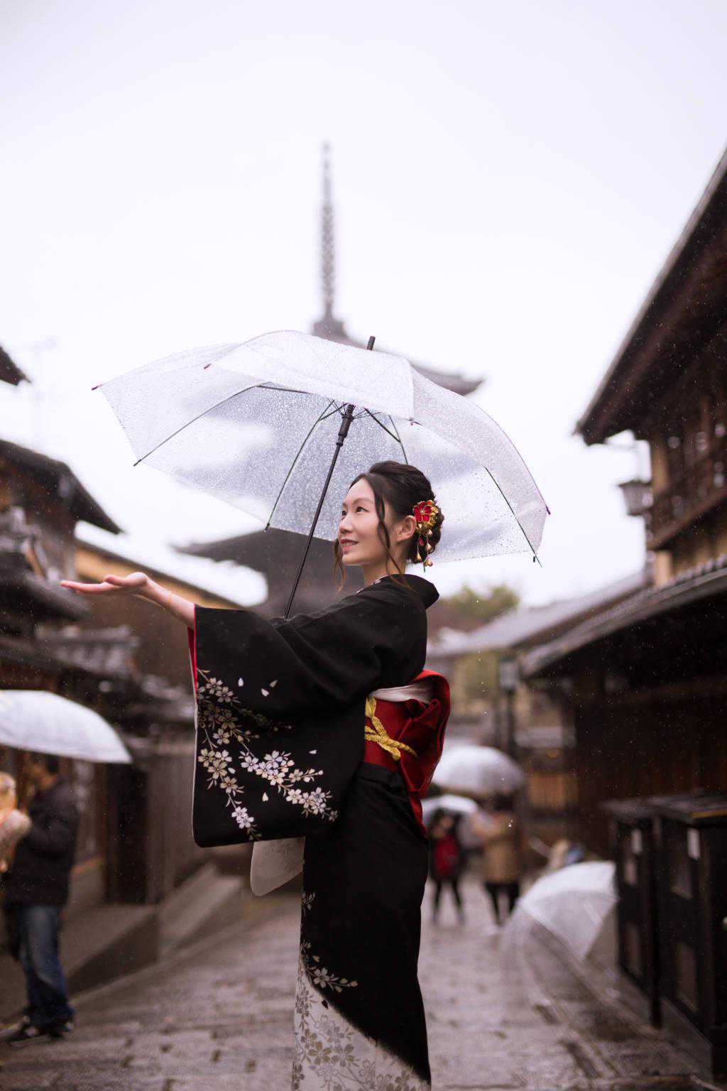 ������������和服:京都樱花和服(清水寺店) ������������拍摄地:祗园周边 ⭐️店铺如何选? 初次来京都,选择满足以下要求的店铺:门面好找的、有中文服务、服务口碑好的、免费跨店归还、和服样式丰富、价格合理的店铺。 ������和服如何选? 和服分为很多类型套餐,一般分为日常的小纹和服、配套比较高级的振袖和访问服、毕业袴服等,这些都是和服初体验比较热门的选项~我个人比较喜欢素色优雅的风格,最后选了一件黑白色的访问服,简约的花纹点缀,也不会造成视觉疲劳。据说黑色和服也是高贵的象征哦!果然出门没有撞衫,比街上很多和服看起来都要高级呢。。 ⛔️需要注意哪些事宜? 1⃣和服店网上预订方便实惠,一般需要提供预约时间段,日本人比较守时,尽量准时到店哦~ 2⃣预订的套餐包含的明细有哪些?想好要穿什么风格,到店不会盲选(衣服太多会挑花眼哈哈哈)。 3⃣穿和服前先上厕所,和服腰带比较紧,期间少吃东西少喝水。穿不习惯人字拖,带上自己的鞋子可替换。 ������������穿和服的流程? 前台核对好订单,店员带到挑选和服区,选好和服配饰等,有专人帮穿戴好,做发型,化妆,大概需要40-60分钟,和服配套越齐全,穿戴时间越长哦。。穿衣过程挺繁杂的。 ������♀️京都简直是和服城市啊,走在大街小巷,公交车上,咖啡厅,饭馆都能看到穿和服的妹仔,分不清是游客还是本地人,走到哪都不会有异样的眼光,个个悠然自得,温柔可人!第一次穿和服,就是有点累,完全也不会担心走出门会害羞哦~~ ������������体验官/博:京都樱花和服店 京都和服日本旅拍
