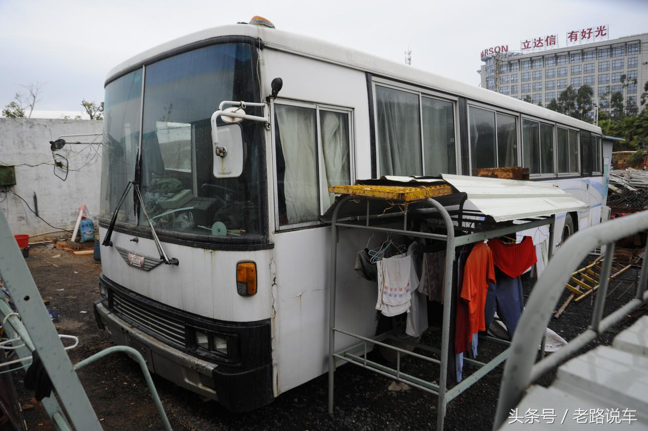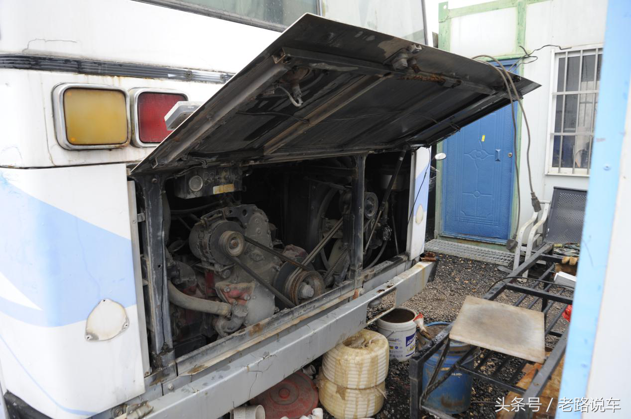 相信在许多90后的记忆里,总有那么几款童年时期印象深刻的车。对于热爱商用车的小编来说,童年时坐过最好的大巴即是这款经典的日野大客车。90年代沿海开放地区的长途旅游大巴都是这种豪华商务班车,另外在大公司、政府等单位也能见到其作为班车的身影,在路上总是左摇右晃地跑。近日一个偶然的机会,小编有幸在某个角落邂逅了这台老骥。 前风挡的两片玻璃造型复古,雨刮也设计成了对刮形式,可以看到风挡正下方设计有玻璃水喷头。 转向灯和示廓灯集成在一起,早期的车型还是四圆灯,到了后期为了适应潮流都改成了四方灯。 大灯旁暗格内藏有备胎升降装置,备胎就在车头正下方,插入专用的手柄后转动就能使备胎升降。 三级登车踏步每一级皆覆有斜纹铝合金防滑板,车门是气动助力的自动门。 光亮如新的电镀把手却隐隐透出一份历史的厚重感。 右下角连接车门与气缸的结构已经不知所踪,紧急柄在紧急情况下拉出后可手动开启车门。 这辆老车最后的年检日期是2015年,也就是说这辆车应该是在1995年上的牌,算是最后的一批车了,留到现在非常不容易,希望有爱车之人把它收藏了。 窗外还下着小雨,而我的心情也随着天气变得沉重。 驾驶区域和同期的日野大鹰卡车如出一辙,没有过多的装饰,简单实用是日系商用车的特点。 里程表的数字停留在了60万公里,正值壮年却逃脱不了被强制报废的命运。 独立冷暖空调由日本电装公司出品,令人惊讶的是空调竟然带有自动恒温功能,这个功能放到现在的国产大巴上都能大吹特吹,何况是一辆20多年前的老车。 控制车门开合的开关和空调面板同样设置在离司机左手最近的小工作台上,方便司机操作。 控制灯光的组件并不是常见的按钮,而是老式的金属拨杆。 发动机熄火开关,向外拉出即可断油从而熄灭发动机,那个电子技术还不够成熟年代大型柴油车的标配之物。 司机位座椅带机械弹簧减震,长长的手刹车和换挡杆直插入地板。 负责传递动力的是一台5前进挡变速器。 CD收音机、音响和彩色电视机等娱乐硬件该有的都有,一样不落。 发黄的车顶和这辆老车见证了他们所走过的沧桑岁月。 车内的座椅几乎都被拆除,改成了民工的宿舍。虽然已经停止行驶数年,但却依然在以另一种形式延续它的使命。 小时候我印象最深刻的,还是那车里淡淡的木头味道、柔软的减震和舒适的坐感。 乘客有48个座位,加上导游座和司机位,准乘人数应该是50人。 最后一排座椅没有拆除,靠背可独立调节,扶手带有烟灰缸。复古的梅花座套配合白色枕巾令人怀念。 HINO已经褪去了原色,蓝色丝带却还在随风飘扬。 三段式(前、后段槽型大梁,中段桁架结构)底盘和全车空气悬挂是日野RU大客车引以为傲的资本,当时的那种日系大巴车是直接进口过来的,底盘和动力系统均按照国外高等级公路客运要求设计,所以底盘到动力到乘坐环境都是不错的。车子开起来之后除了后排噪音稍大之外,整体感觉就像是坐在一艘摇摇晃晃的大船上,低速走坑坑洼洼的国道每过一个坑,车身都要来回晃几次,没坐过的人不太能体会到这种神奇的感觉。当时好多人不适应那种晃晃悠悠的感觉,在转弯的时候客车会向一侧倾斜,底盘几乎要檫到地面,对于容易晕车的人来说就是噩梦,每次一上车司机就忙着发呕吐袋。而当高速行驶时车身却能稳稳当当地紧紧抓在公路上风驰电掣。 可惜现在很难见到这种亮瓦了。 行李舱实际可用空间不是很大,多数空间被各种设备所占据。 据说这辆车有两个油箱和两个发动机,其中一套油箱和发动机是专门供给独立空调运作的。 与同时期日系卡车一样醒目的灯组,还是原厂出品,外侧有一圈电镀件保护,远看粗犷简陋,实则精致耐用。 前后保险杠与卡车一样直接和大梁相连,容易发生剐蹭的保险杠两端有橡胶包裹,中间牵引钩上方清楚地标明了其极限载荷。 打开发动机舱,可以看到左侧是空气滤清器,冷却水箱在发动机正上方(可以不开启发动机舱盖加注),右侧是中冷器。 搭载的是日野H07型直列6缸后置卧式发动机,卧式发动机活塞水平运动作功,同期日产UD客车也有这种设计。好处是降低发动机仓高度,使车厢内部空间利用率更大,乘坐舒适性更好。缺点也有,那就是后轴负荷较大,不利于整车操控稳定性。 驻车制动并不是作用在车轮上的,而是作用在传动轴上的中央制动。在变速箱后方与传动轴的连接处有一个制动盘,通过与驾驶室手刹连接的钢索将拉力传动到制动盘,从而实现驻车制动。 发生紧急情况时太平门绝对是后排乘客逃出生天的太平之门。 拆下后被丢弃在一旁的座椅,期待还能有再重新装回去的那一天。 这可是当年满街跑的大鹰啊!那特别的加速声浪,巨大嘎嘎的响声(几乎所有的日系重型车都是这样的加速声)中体现的澎湃动力和欧洲重型车的加速声是有很大的区别(欧系的是清晰宁静的响声,没有日系的嘈杂,体现出低转速的强劲动力)。前几年偶尔还能看见一两辆老日野在街上跑,曾经飞驰的大红鹰,可惜现今也都消失在时代的洪流中了。