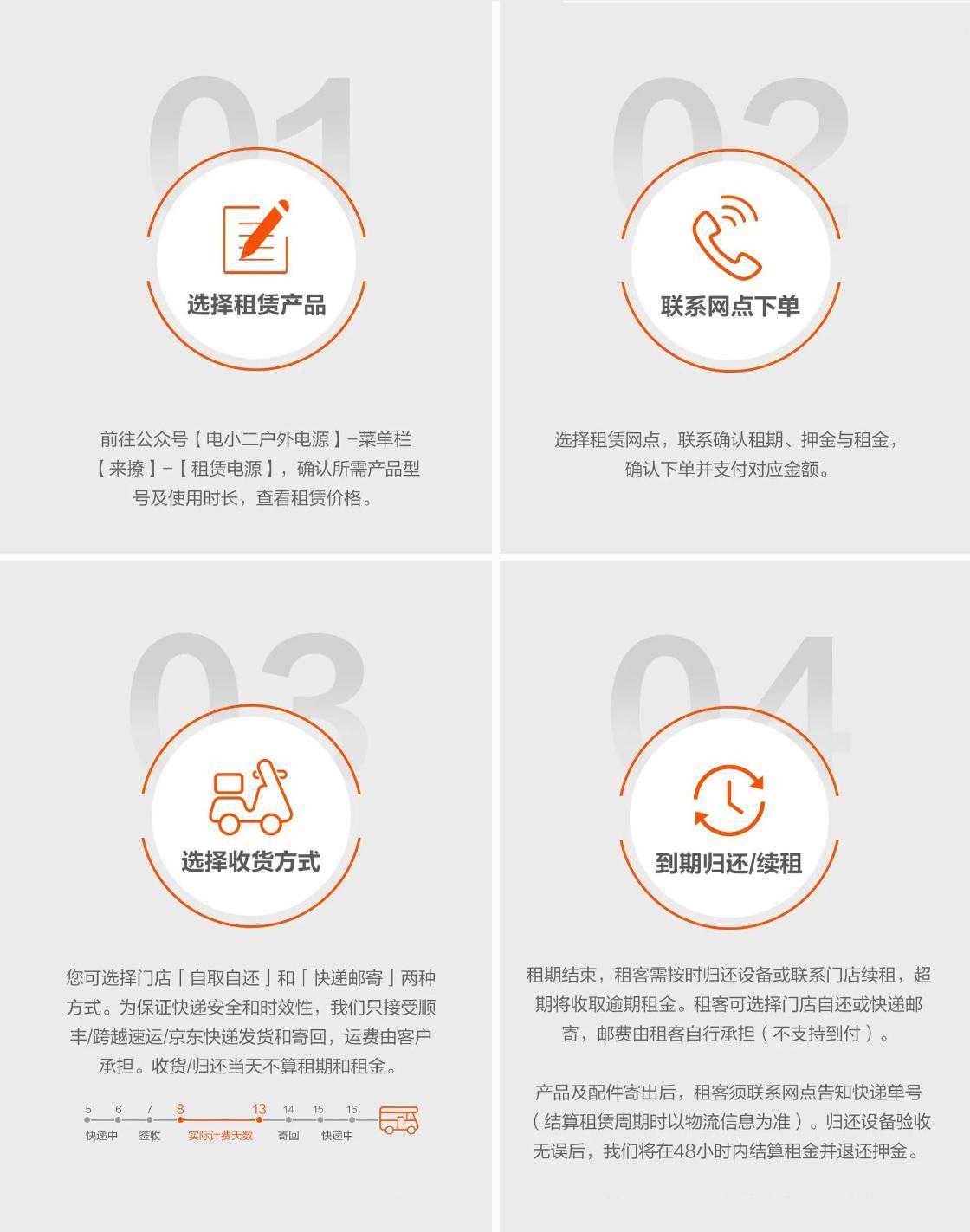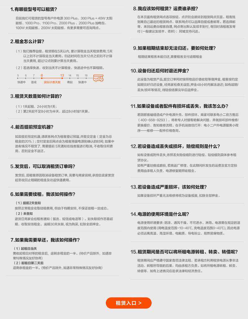 2023年11月28日,Jackery电小二官方合作租赁联盟上线,为用户提供多款户外电源与太阳能板的租借服务,用户仅需极低的租金即可将户外电源借回家。 不同的户外活动强度对电力需求也有所不同,为全面照顾不同用户的用电需求,Jackery电小二官方合作租赁联盟一口气拿出了四款户外电源主机、一款加电包、三款太阳能板供大家选择,费用低至39元起。 轻度自驾出行,主要用电设备为手机、平板、电脑、无人机等消费电子产品,可选择户外电源300Plus,体积小巧轻便;需要在户外使用煮食用具、施工器械、小电器等对功率有一定要求的,可选择户外电源1000Pro、户外电源1100Pro,支持1000W大功率输出,且储能电量达到1度电;长时间郊野活动与作业,对续航有着更高要求的,可以选择户外电源2000Plus,储能达到2度电,还能额外租借加电包进行电力扩容。在难以补给电力的地区,还可租借100W、200W太阳能板,充分利用光照转化电力,进一步提升电力续航。 【借】、【还】是租赁服务的最关键的一环,Jackery电小二官方合作租赁联盟的本着“易借易还”的操作,提供线上公众号选型支付线下门店取件归还等方式,普通用户也能简单借、还户外电源,下面简单介绍一下租借流程。 首先,用户可以在【电小二户外电源】公众号内进入【来撩】-【租赁电源】,根据自身需求选择对应的户外电源型号、租赁网点,随后确认租期并支付押金与租金。提货方式可选择前往附近的门店【自取自还】,亦支持【快递邮寄】。归还时,可通过门店归还,或者指定快递公司发回。 对于用户常见的疑问,官方合作租赁联盟列举了多个问答,诸如租金计算方式、提前预订机器、租赁取消、机器续租、提前归还、退回押金等问题也做出了详尽的解答。 Jackery电小二官方合作租赁联盟的推出让消费者直接跨过了“高投入”的最大阻碍,用户以极低的费用即可体验电力充沛性能强劲的户外电源产品,型号覆盖了便携的户外电源300Plus、旗舰型号户外电源1000Pro、户外电源1100Pro、加电包型号户外电源2000Plus,还提供太阳能板可租借,大大提升了消费者对便携储能产品接触使用几率,从而加速便携储能的普及。同时,租赁联盟拥有Jackery电小二官方背景,相比第三方租借平台,租借支付、产品质量等综合服务等都更有保障。 Jackery电小二官方合作租赁联盟目前已上线,大家可以到公众号【电小二户外电源】进行租借或了解更多详情。