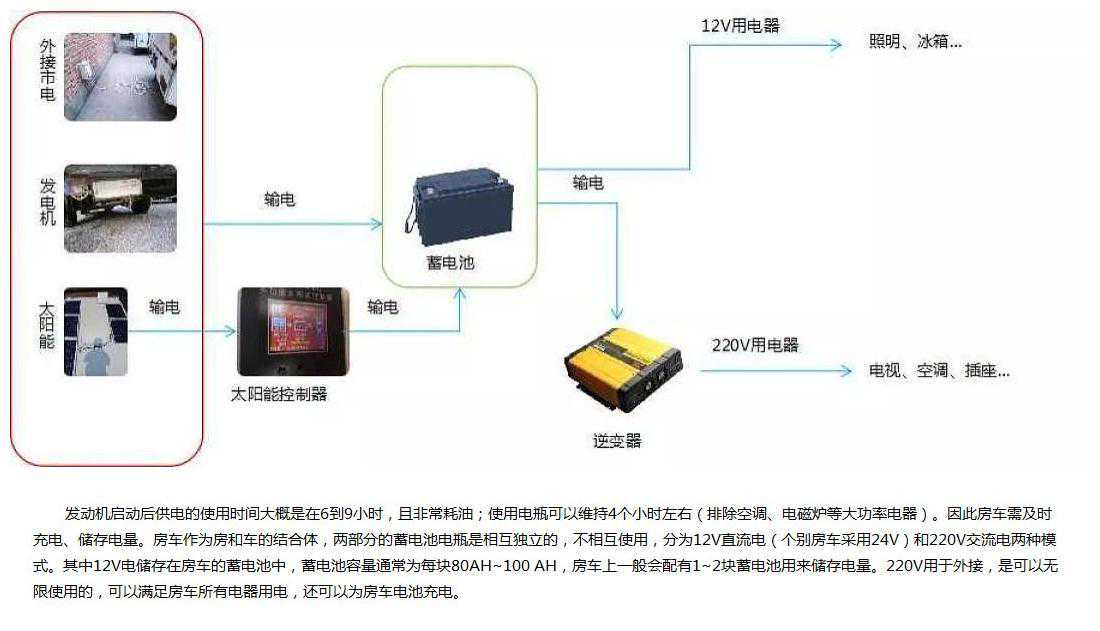 你是否梦想过这样的生活——打开车门是山清水秀的美景,关上车门是煮饭睡觉的生活;每天住在不同的地方,“在家”便能领略户外的风情……一辆房车就可以为你实现!房车,又称“车轮上的家”,兼具“房”与“车”两大功能,是一种可移动、具有居家必备基本设施的车种。车上的居家设施有卧具、厨具、沙发、餐桌椅、盥洗设施、空调、电视等家具和电器,可分为驾驶区域、起居区域、卧室区域、卫生区域、厨房区域等。它集“衣、食、住、行”于一身,实现了旅行者“生活中旅行,旅行中生活”的愿景。