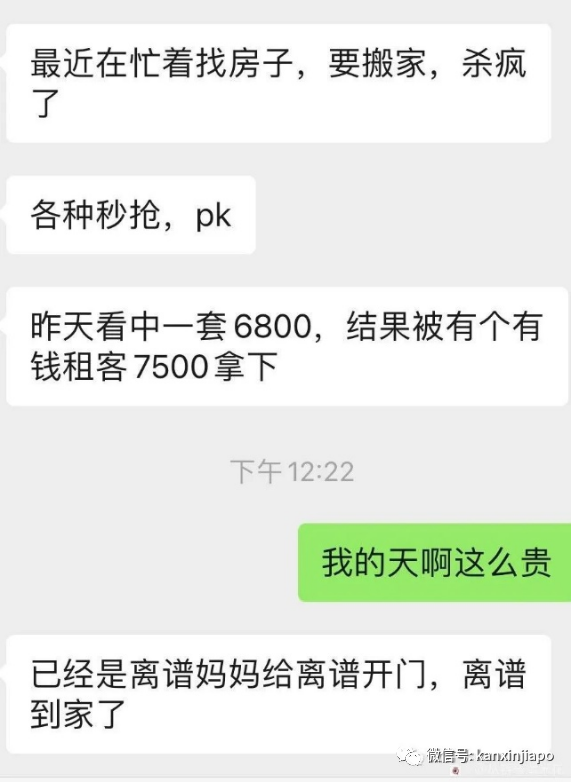 最近在新加坡,房租涨价可是个大热话题。 根据新加坡建屋局(HDB)的数据,从2020年疫情以来房租已经连涨28个月了,组屋房租在过去的10个季度中涨了近50%! CNA最近采访的一位韩国女士表示,自己当时租房时租金为2000新币每月,现在她将花费4000新币每月才能找到和以前差不多的房屋,而就在签订租房合同前不久,租金涨到了5000新币每月,她被要求支付比原来高出150%的租金! 在《新加坡眼》APP上也有网友发帖吐槽:2007年刚来时,一个床位只要$140一个月,慢慢涨到了现在的$350,如果想要报地址,还要更贵。 还有网友发帖说,2015-2016年在新加坡高文排屋租一个小单间,才700新币一个月,三巴旺的排屋主人房是1000新一个月,而现在一个老式公寓普通房却要1000新一个月了。 (老式公寓普通房) 根据建屋局数据,以某些城镇的五房组屋租金为例,和2020年一季度比较的话,其涨幅达到了47.4%,其中榜鹅月租金中位数达到了2800新币。 同时新加坡房地产联合交易网(SRX)也发布报告,新加坡的公寓和组屋租房价格持续走高,私宅租金连续攀升28个月,10月环比增长2.7%。 至于小伙伴们租房的最佳首选组屋,也是连续增长28个月,10月环比增长了1.8%。 即使租金涨幅已经达到这样恐怖的程度,却也依然是“一房难求”。 对于这样的情况,房东们自然喜笑颜开,但是租房的小伙伴们可就叫苦连天了。大批租客在网上发帖吐槽,惊呼受不了。 甚至有网友在《新加坡眼》APP上发帖怒骂房东持续性涨租的行为: 还有租客正在经历着“一房难求”的火爆场面: 对于现在无论是租金还是房价都高得离谱的现状,网友们也纷纷在《新加坡眼》APP上留言,有无奈心酸的: 也有理性分析的: 从今年8月份开始,面对租金翻四倍的情况,就连房产中介都直呼疯狂! 房价上涨如此之快,到底是什么原因呢? 对此李显龙说道,BTO项目因为疫情延迟,让大家的住房计划受到了影响。加上物价的上涨、人才回流等影响,越来越多人陷入焦虑,开始提前抢购房屋,导致一时间房屋供不应求,购房价格的上涨。 购房价格上涨又会迫使部分暂时支付能力不足的人群转为租房居住,这一部分人群又会与原本的租客们相竞争,于是又导致了租金的上涨。 对于现在房租持续性走高的现象,《新加坡眼》APP上也曾有邀请专业人士分析,目前可以给小伙伴们几点建议,快快马住哦! 1、现在租房市场供不应求,租房要提前最少2个月开始寻找,遇到合适的不要错过。 2、虽然现在租房需求增加,房源紧张,建议不要盲目的签合同,一定要通过合格的中介处理租房合约,同时也要擦亮双眼不要被骗,最近就有一外国男子被骗租金五万多新币。 3、对于合租房,最好和屋主确认是否会雇用打扫卫生的清洁公司来打扫。建议每周或者每十天打扫一次。 租金上涨已经持续了接近28个月了,各方人士都认为这种状态可能会持续到2025年。 也许各位小伙伴看到这里已经彻底焦虑了,但是不要担心,《新加坡眼》APP上有专门的租房板块,一直以来提供了很多优质房源,为各位租客或房东提供了一个良好的平台,感兴趣的小伙伴可以去了解一下哦。 —END—
