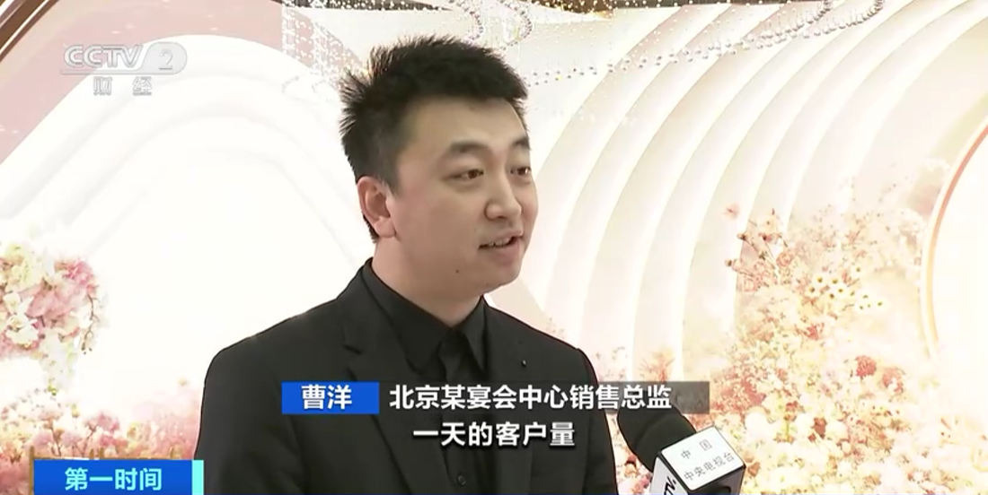 北京某宴会中心销售总监曹洋:一天的客户量最多能达到30多对到40多对。