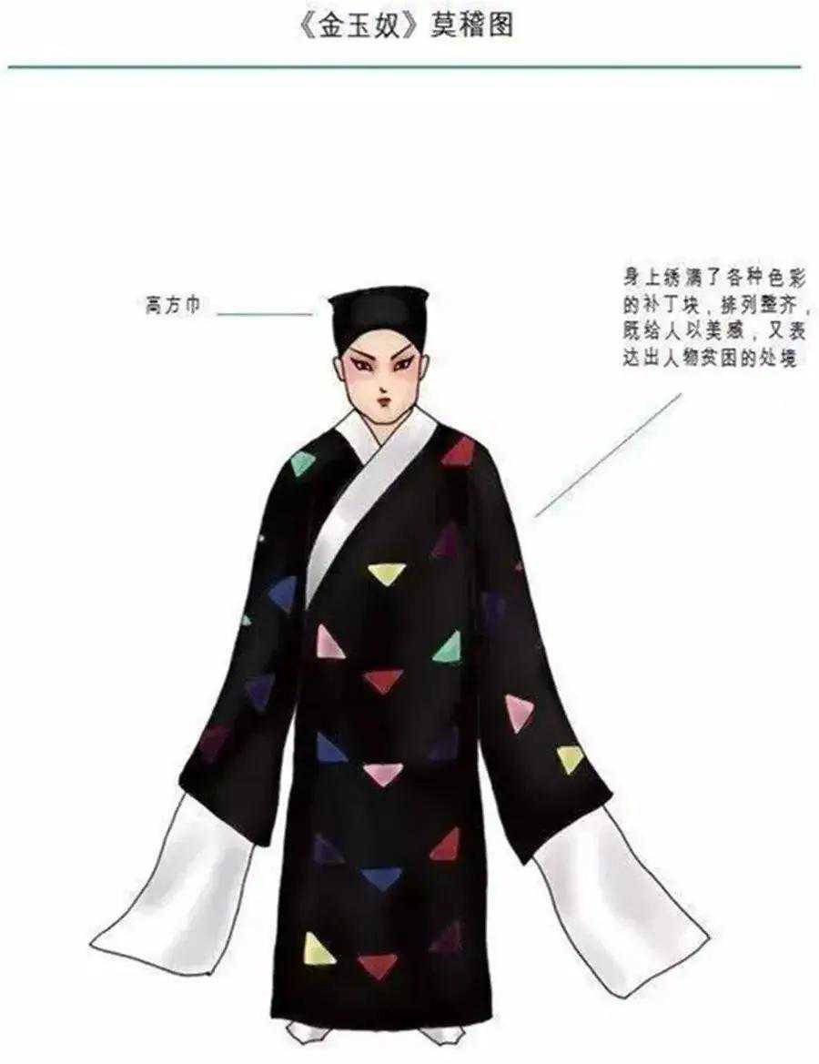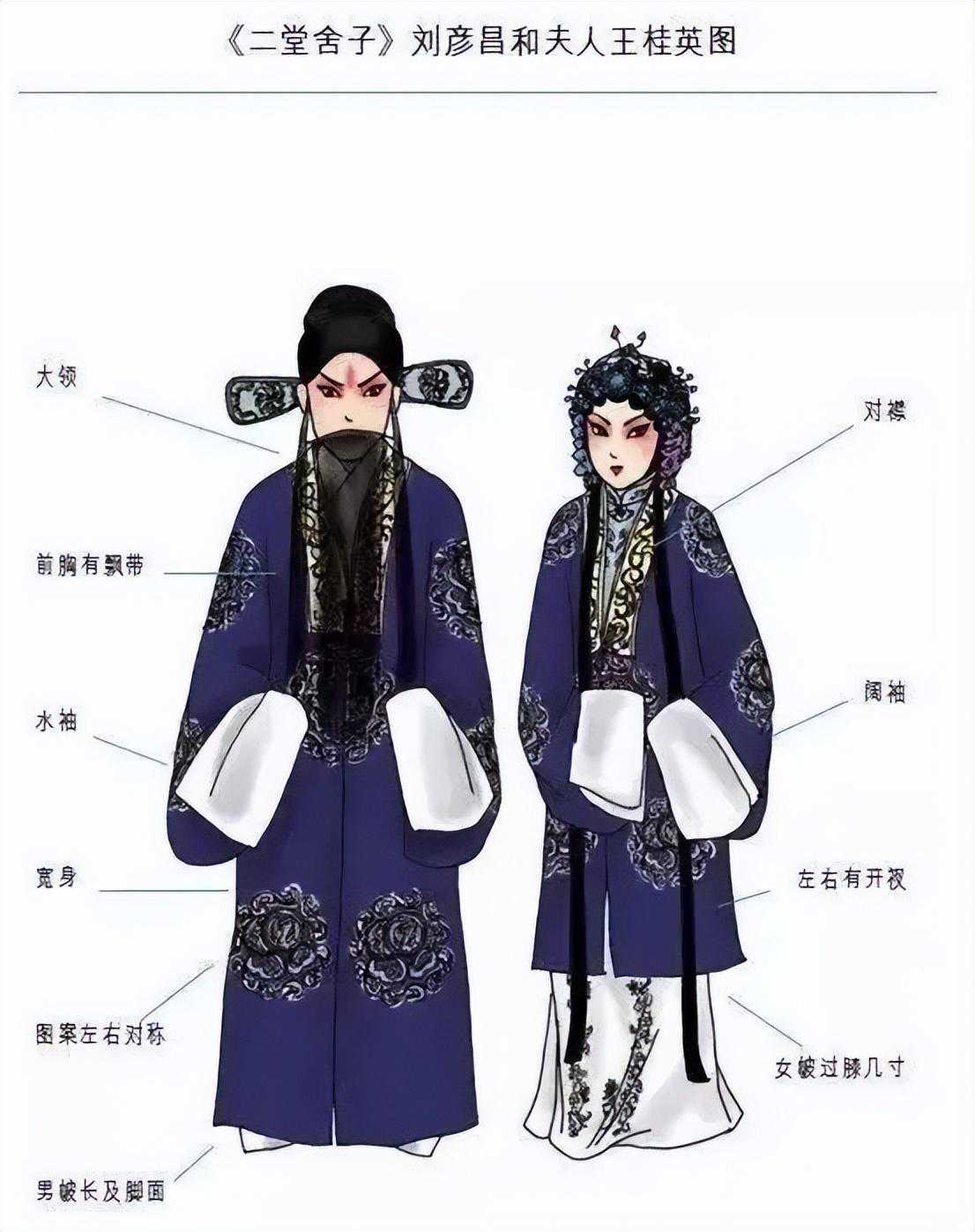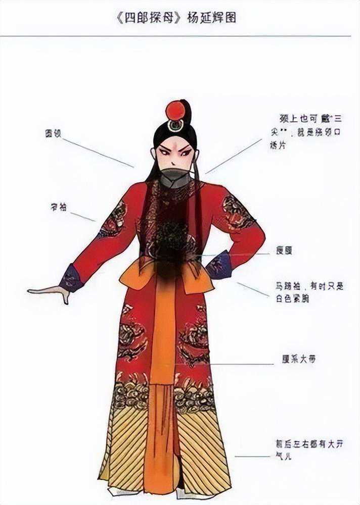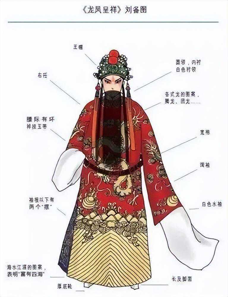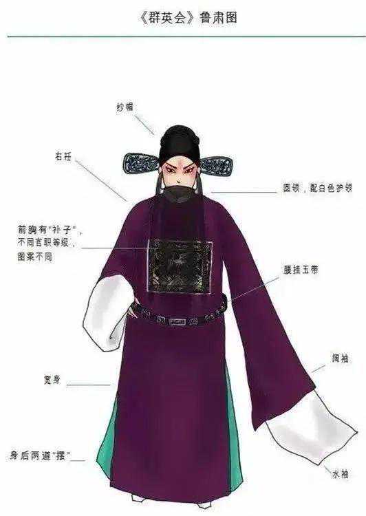 京剧的演出服装种类繁多,色彩斑斓,分为大衣箱、二衣箱、三衣箱。其中,大衣箱以文服为主,有水袖,包括蟒、帔、官衣、开氅等;二衣箱以武服为主,没有水袖,包括靠、箭衣、抱衣等;三衣箱以靴鞋、水衣、彩裤为主。此外,出于习惯,龙套衣、太监衣虽然带水袖,但也被归入二衣箱。下面,我将分门别类地加以仔细介绍。 一、细说京剧服装 (一)大衣篇 京剧的大衣类服装主要有蟒、官衣、氅、帔、褶子、宫装、古装及其服饰配件。 1、蟒——达官显贵最正式的礼服 彩绣十团龙红色蟒袍 在中国古代,蟒是帝王将相的正式礼装,由质地厚实的大缎制成,绣满各种造型的龙,异常华丽。传统戏曲中的“蟒”是龙袍、蟒袍的简称,仿明代蟒衣制成,圆领大襟、大袖、长及足,上绣云龙,下绣海水。 蟒的颜色有很多,常用的就有:黄、红、白、黑、绿、紫、蓝等。不同颜色适用于不同的角色。如皇帝穿黄蟒;皇亲国戚或朝廷重臣穿红蟒;性格粗豪者穿黑蟒、蓝蟒;年轻俊雅者穿白蟒、粉蟒等。 “蟒”有男、女之分。女蟒较短,长及膝,绣龙凤,腰围玉带,下缀海水,是皇后、嫔妃、公主、诰命夫人等贵族女性在正式场合穿着的礼服。比如《贵妃醉酒》中的杨贵妃;《龙凤呈祥》中的孙尚香等。 2、宫装——皇妃公主的日常着装 宫装,也叫宫衣、舞衣,皇妃公主等用于后宫和日常生活场合。宫装精美华丽,上衣下裳相连,长及脚面,云肩缀繐,腰下缀有彩色飘带,舞动时,飘带、丝穗,配上雪白的水袖翩翩而动,美不胜收。《状元媒》里的柴郡主;《打金枝》中的升平公主等穿的都是宫装。 3、官衣——文官的工作服 官衣,是普通文官最正式的服装。它模仿明代文武官常服“团领衫”,用素色缎料制成,圆领大襟,大袖长及足,不绣纹样,前胸后背各一块方形补子,上绣飞禽及旭日海水。 官衣的颜色有紫、红、蓝、黑等,依官阶大小而定。宰相、国老等着紫色;巡按、府道等着红色;知县等着蓝色;黑色为驿丞门官穿用,又称素服。 女官衣分红、秋香两种颜色,多用于诰命夫人。尺寸短,仅过膝部,身后无“摆”。使用时,腰系丝绦,下身系裙。红色为一品夫人穿用,同时也作为传统的结婚礼服。 4、帔——出门会客的休闲服 帔,即对襟长袍,模仿明代披风制成,是剧中帝王、官吏、乡绅及其家眷在家居场合的通用服装。 帔有男女之分。男帔相当于男性休闲服,上至皇帝,下至乡绅,气质成熟端庄、家境不错的男性都可以穿。如《斩黄袍》中的赵匡胤,《打渔杀家》中的丁员外都穿帔。 女帔较短,及膝,配有裙子,是夫人、小姐的主要服饰,如《卖水》中的小姐。 舞台上的夫妻有时会穿颜色相同、图案相同的帔,来表现他们的举案齐眉。比如《二堂舍子》中的刘彦昌和夫人、《龙凤呈祥》中的刘备和孙尚香。 5、褶(xué)子——人人能穿的便服 褶子,由明代斜领“大袖衫”改良而成,和尚领,袖子宽阔,是京剧舞台上男女老少都可穿的一种便服,也称作“道袍”。 褶子的种类颜色都非常多。带刺绣图案的叫花褶子,纯色的叫素褶子;大缎做的比较厚重的叫硬褶子,绉绸做的比较薄的叫软褶子。 剧中,为富不仁的公子哥或绿林人士多穿绿花褶子;社会底层的老年人穿浅土黄色褶子;正直清贫之人穿青褶子;文雅之士,如《捉放曹》中的陈宫穿的是蓝褶子。 女褶子,又分“大襟”“对襟”两种。 大襟多为素花,老年妇女穿用; 对襟是小姐或年轻夫人的便服,颜色淡雅,绣有鲜艳的角花,如《凤还巢》中的程雪娥等; 高领青素褶子,又叫“青衣”,专为贫困妇人所用,如《秦香莲》中的秦香莲,《武家坡》中的王宝钏等。 秦香莲 富贵衣,是褶子的一种。满身补丁,是人物贫穷落魄时穿的一种衣服。在京剧舞台上,凡穿富贵衣的人,虽当下贫困,但日后都会福星高照,否极泰来。比如《彩楼配》中的叫花子薛平贵,后来当上了皇帝。所以,富贵衣其实说的是日后的富贵。 6、古装 古装,是京剧大师梅兰芳在排练《天女散花》时的创新之作。它采取圆领对襟云肩,带水袖的阔袖古装袄,以及飘带软带等,突出了女性的曲线美。 (二)二衣篇 二衣,是元帅将军、草莽英雄等穿的武服,主要包含靠、甲、箭衣、马褂等。衣服的袖口、裤腿均为紧缩型,腰间系有大带或束带,这是其与大衣的区别所在。 1、靠——传统戏中武将的装束 靠,又称“甲”,有男女之分。男靠,由靠身、下甲、靠领、靠旗组成。圆领、紧袖、长及足,分前后两片;女靠,与男靠样式大致相同,但配有如意云肩、飘带裙,胸前加护心镜。 2、箭衣、马褂——男人的户外装 箭衣,仿明代箭衣制成,圆领大襟,瘦袖平口,袖长齐腕,衣长及足,前后左右开衩,是一种轻便戎服,也可用在非作战场合,以示尚武。 《野猪林》-林冲 马褂,款式与清代男式对襟马褂相同。在舞台上,常套在箭衣外,作为行路的外罩服装,可用于任何朝代。 《长坂坡》刘备 3、抱衣抱裤、侉衣侉裤等 抱衣抱裤,亦名“英雄衣”“夜行衣”,由紧身的衣、裤组成,是英雄义士、绿林好汉的轻便着装。穿扮时胸部揹丝绦,腰际扎鸾带或束带板,如《龙凤呈祥》中的张飞等。 抱衣抱裤-《龙凤呈祥》张飞 侉衣侉裤:与抱衣相似,但更素净一些,对襟,小领。 女打衣裤,又称“战袄战裙”,由打衣、打裤、战裙、腰箍飘带组成。打衣为小立领对襟,紧袖,衣长过臀;打裤为绣花扎脚品灯笼彩裤;战裙由左右两片护腿组成,裙长至足。 《十三妹》何