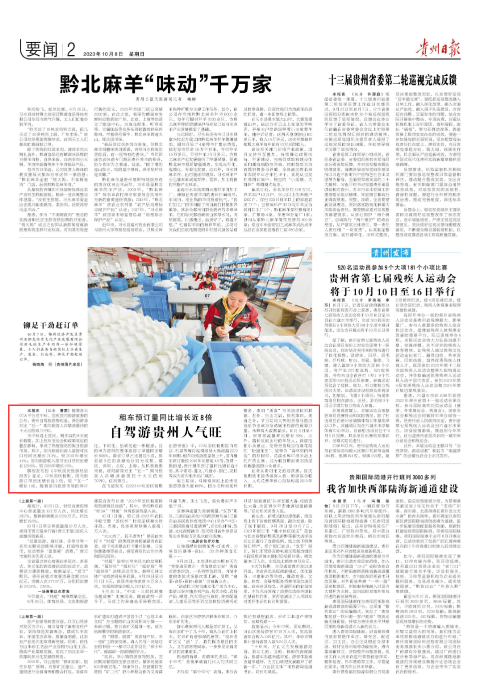 随着各大OTA平台对中秋、国庆国内旅游数据的公布,贵州自驾旅趋势明显,贵阳跻身对比“五一”期间旅客人次增速最快的十大目的地TOP10。 当中秋遇上国庆,调休后的8天超长假期,加上杭州亚运会和政策效应的叠加影响,形成了热度强劲的假日旅游市场。其中,国内旅游出游人数按可比口径同比增长71.3%,较2019年增长4.1%;国内旅游收入按可比口径同比增长129.5%,较2019年增长1.5%。 携程发布的《中秋国庆旅游总结报告》显示,中秋国庆假期,国内旅游订单同比增长近2倍,较“五一”增长1成。随着国内旅游市场的碎片化、下沉化、品质化进一步提速,目的地为贵阳的整体旅游订单量同比增长896%,跨省订单占比超过6成,排名前5位的客源地分别为成都、重庆、深圳、北京、上海。从机票数据来看,贵阳跻身对比“五一”期间旅客人次增速最快的十大目的地TOP10,位列第五。 在飞猪发布《2023中秋国庆假期出游快报》中,中秋国庆假期国内酒店、机票等履约规模继续大幅超越2019年同期。租车自驾热度显著上升,国内租车预订量较2019年劲增超4.6倍。值得一提的是,贵州租车预订量同比增长近8倍,其中贵阳、遵义、六盘水、铜仁、安顺等成为省内租车热门城市。 假日期间,马蜂窝网站上的贵阳旅游热度大涨198%。因小吃种类花样繁多,贵阳“美食”相关热度位列顺德、苏州、乐山之后,排名第四。美食之外,节日期间大热的贵阳马路边音乐节也成为拉动城市旅游的重要力量。马蜂窝大数据显示,10月3日至4日,贵阳客流量环比增长39%。此外,擅长反向出行的年轻人,深度挖掘小众景点,使得贵阳周边恰逢花期的“粉黛花田”、被誉为“森林里的洱海”的杉树村、花溪水库中段半岛上的布依山寨,成为假日期间贵阳热度涨幅最高的小众景点。 记者从贵阳市文旅局获悉,国庆假期该市接待游客人数、旅游综合收入、人均花费等核心指标均超2019年同期。 天眼新闻记者曹雯 二审梁瀚泽刘娟 三审黄蔚庞博