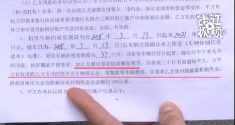小赵是安徽人,来杭后通过一个app应聘做网约车司机。很快,他收到了杭州万郡行汽车租赁有限公司的消息。对方不仅可以提供相关工作,还可以提供比亚迪汽车作为网约车车辆,期满后还能以以租代售的形式把车给小赵。小赵觉得不错,去年就和对方签了相关协议。但这个月15号,车却被开走了。 反映人小赵: “半夜里被他们开走了,我(凌晨)四点起来,他们把我家钥匙也拿走了。 (他们怎么拿到了) 他们有备用钥匙,我家里的钥匙、钱都在(车)里面。” 车子突然被杭州万郡行汽车租赁有限公司的人开走,小赵说自己真是郁闷。2018年,他通过应聘平台了解到如果要和这家公司租车,需要保证金5000元,首付款一万元,每月租金4100元,租期36个月。租期满后,可以用11400元的价格购买这辆车。小赵觉得可以,就签了这份协议。但没想到,现在,车子就这么被开走了。为了了解这中间究竟发生了什么情况,帮忙记者也找到了这家汽车租赁公司。 杭州万郡行汽车租赁有限公司销售总监王星浩: “他说是要(2月)13号退车。 (就是说你们是没有收到租金) 对的,他是(2月)14号才打的租金。” 原来,双方约定每月13号支付租金,小赵付款逾期,付了之后也没通知业务员,所以车子才被开走。不过呢现在,小赵说,自己也不想拿回车子了,他只想跟对方提前解除合同。 反映人小赵: “后来大概是到了(2018年)七月份的时候,我看了车上面大概是2015年的车,我2018年买的新车你给我的是2015年的车而且还停产了,你这不是骗我吗。然后我说退车,拖到(2018年)10月份,他说可以给我退,说最多扣三千元,然后我去停车场拉我进群(一起退车的)都退了,但他不给我退,说最多给我一千块钱。” 了解了小赵提出的问题后,销售王先生首先否认了“车子是2015年的车”这个说法。 杭州万郡行汽车租赁有限公司销售总监王星浩: “前期里所有的车型都是2016年6月到10月买的保险。 (就确定不会是2015年的车?) 是的。” 帮忙记者提出想看下小赵的这辆车,但被告知车在仓库,不在公司。那么,小赵现在提出想要提前解除合同可以吗? 杭州万郡行汽车租赁有限公司销售总监王星浩: “退合同没有问题,但是按照合同上来看我们还有权去起诉赵先生,按照合同上来讲肯定是没有的退的,还要扣除他剩余租金的30%。” 在双方签订的租赁合同上明确约定,如果要提前解除租赁,杭州万郡行汽车租赁有限公司有权没收保证金和首付款,并要求小赵承担剩余未到期租金总额的30%。可是,按照小赵之前的说法,有人解除合同成功并只扣除几千元。这又是怎么回事呢? 杭州万郡行汽车租赁有限公司销售总监王星浩: “很多时候我们的业务员是按照他(租赁方)的想法去帮助他的,从合同上来看总部以及集团采不采用他的这个建议从我们这边来说都是要帮他去协调的。 (就这个事还要再后续协商) 对,再后续协商。” 最终销售部的王先生表示他会亲自接手小赵的事,尽快处理妥当。
