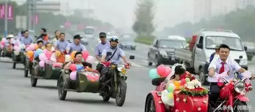 中国结婚豪华迎亲车队大盘点:这些车队你最服哪一支车队,看好了,有豪华的,有创意了,喜欢哪一支车队就收藏好了,等到结婚的时候也这样可好。 这支迎亲车队,开着超20米加长悍马迎娶新娘,是不是都看傻眼了。 土豪结婚,这迎亲婚车队一个比一个豪。 这迎亲车队,最前面还是运钞车开路,运钞车里是不是有聘金。 这支迎亲车队也不简单呢。 莆田仙游街头一队由一支三轮车组成的迎亲车队,这样的迎亲车队真拉风,看着好气派。 再来一组豪华创意的。 哈哈,这样子迎亲也挺有意义的。 还有清一色的人力三轮车,上面用大红的喜字和彩色的气球装饰。与上面的奔驰宝马婚车队大相径庭~ 自行车迎亲队 出租车迎亲队够拉风吧。 这拖拉机迎亲队够气派,新郎,你家是卖拖拉机的吗。 自行车迎亲车队,环保健康有创意。 卡车迎亲车队 挖掘机迎亲车队 清洁车迎亲 出租车迎亲车队 自行车迎亲车队 马车迎亲车队 骑马迎亲 ——让我们红尘作伴活得潇潇洒洒,策马奔腾共享人世繁华,驾! 手推独轮车 ——新娘不要太胖,新郎加把劲,嘿! 平衡车迎亲 我以为平衡车就够潮够有趣味了, 万万没想到这哥们用了直排轮迎亲! 传统轿子迎亲 火车、动车迎亲 飞机迎亲 热气球迎亲 降落伞迎亲 渡船迎亲 15、大型云梯车车队 这样子的车队是不是特养眼特拉风又环保