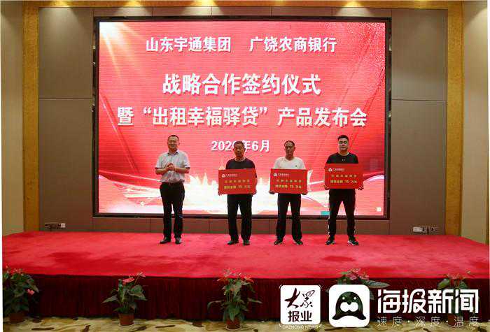 大众网·海报新闻记者尹国静见习记者孙淑娟通讯员燕峰任建东营报道 6月29日上午,广饶农商银行与山东宇通集团在尊悦国际饭店五楼尊悦厅举行战略合作签约暨“幸福出租驿贷”信贷产品发布会。广饶农商银行行长孙鹏飞、山东宇通集团副总经理杨向波出席了本次活动。 发布会上,山东宇通集团副总经理杨向波以PPT形式简要介绍了山东宇通集团及旗下出租车公司的发展历程与基本情况。广饶农商银行行长孙鹏飞详细介绍了广饶农商银行全新推出的“出租幸福驿贷”产品。该贷款产品主要服务于广饶县出租车运营机构和广大出租车司机朋友,用于提升辖区交通便利性与支持就业创业,实现出租车司机朋友们“0首付启程”的梦想。同时,广饶农商银行将在广饶县71家营业网点成立“出租驿站”,提供免费热水、休息等服务,为广大出租车司机朋友们提供一个温馨的家园。 产品介绍结束后,孙鹏飞和杨向波分别代表广饶农商银行与山东宇通集团签订了战略合作协议,接下来,双方将按照“优势互补、共同发展”的原则,不断强化辖区交通领域合作,积极助力县域经济发展。最后,孙鹏飞行长为第一批申请“幸福出租驿贷”的司机朋友进行了现场授信。 本次发布会不仅是广饶农商银行开拓异业联盟、合作共赢的新尝试,也是广饶农商银行与山东宇通集团全面业务合作的新起点。广饶农商银行将以“出租幸福驿贷”的推出为契机,不断创新业务合作模式,做好金融服务保障,为广大客户提供更加优质便捷的金融服务,为广饶县域经济发展做出新的、更大的贡献。