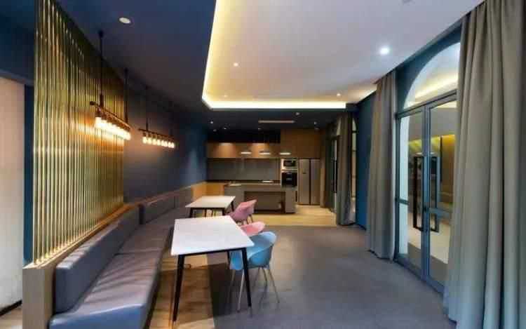 1楼休闲区定期举办社区活动。休闲区设置有超大网络电视和公共厨房,你也可与自己的小伙伴们一起开party、看电影、涮火锅、烤肉,欢乐时光不可辜负哦。