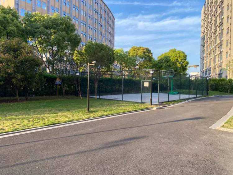 在室外,有一个篮球场。除了可以约三五好友打篮球,还可以进行跳绳、羽毛球等丰富多彩的室外活动。