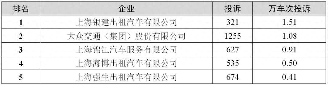 市交通委介绍,2023年三季度,我市有关巡游出租汽车信访、热线投诉共9878件,环比上季度上升14.94%。根据出租汽车企业万车次投诉排名,银建在大型出租汽车企业板块中垫底。友联、永事、宝迪、新霞位列所属板块最末。小型出租汽车企业的单位万车次投诉明显高于其他板块。详见↓ 这些企业被投诉最多 根据本市巡游出租汽车平均营运车次数,每万车次投诉为0.96件,环比上升0.06件。 全市共有61家出租汽车企业万车次投诉超过行业平均水平,其中小型出租汽车企业占比62.30%。有32家企业万车次投诉超过2件,其中小型出租汽车企业占比65.63%。 大型出租汽车企业万车次投诉排名 以下四个板块万车次投诉居前的企业,有17家投诉均高出行业平均水平! 中型出租汽车企业 小型出租汽车企业 区域出租汽车企业 个体托管企业 备注:大型出租汽车企业车辆额度数为1000辆以上;中型出租汽车企业车辆额度数为200~1000辆;小型出租汽车企业为车辆额度数小于200辆;区域出租汽车企业为郊区区域内运营的出租汽车企业;个体托管企业为出租汽车个体工商户委托管理企业。 经核实,2023年三季度被投诉超过5次的巡游出租汽车有26辆,涉及19家企业。 三季度被投诉超过5次的巡游出租汽车