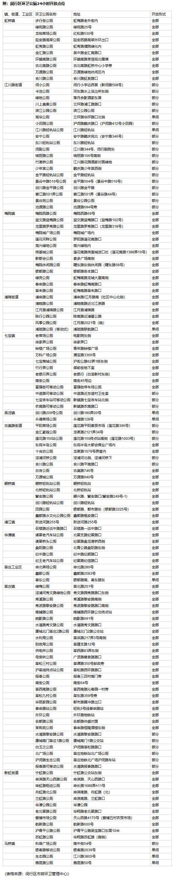 由上海大调研、澎湃新闻携手上海人民广播电台等单位共同推出的《2023夏令热线:区长访谈》火热进行中。在7月24日的节目中,闵行区区长陈华文做客直播间接听市民电话,回应热点问题,澎湃新闻也在节目中反映了夜经济活跃区域“如厕难”、公厕开放时间能否延长的市民诉求。 8月1日,澎湃新闻()记者从闵行区获悉,为了更好服务市民,当日起,闵行区132座公厕开始实行24小时开放,数量占到全区公厕总数(267座)的近50%。 此前《上海市绿化和市容管理局关于进一步加强本市公共厕所管理工作的指导意见》提出,大型商圈、商业街、夜班通宵车始末站周边公厕、在居民社区中发挥居家厕所功能的公厕、市民需求特别强烈的公厕优先实行24小时开放。 “目前我们就是围绕这些区域先行开放一部分环卫等级公厕,之前组织镇、街道、莘庄工业区相关部门和企业开过专题会,进行过两个星期的人流量测算,才有了这些点位的出炉。”闵行区市容环卫管理中心相关负责人表示,相对来说,城市化程度较高的区域、客流量较大的地方,24小时公厕开放的点位较多,人口密度小的区域,公厕开放数量少一些。 该负责人表示,公共厕所24小时开放形式也是因地制宜,有的是整座厕所开放,有的是部分厕间(位)开放,还有的采取夜间临时增设移动厕所等形式,通过多种途径来努力实现24小时开放。 闵行区目前一共有267座环卫等级公厕,多数在晚上9点关闭。此次132座公厕开放时间延长至24小时,数量接近总数的一半,也给各镇、街道和莘庄工业区相关管理部门带来了更多压力。公厕24小时开放目前在试运营阶段,相关部门会边开放边查找问题边优化完善,主管部门也提醒广大市民爱护公厕,在享受城市公共空间便利的同时,自觉维护公共环境卫生。